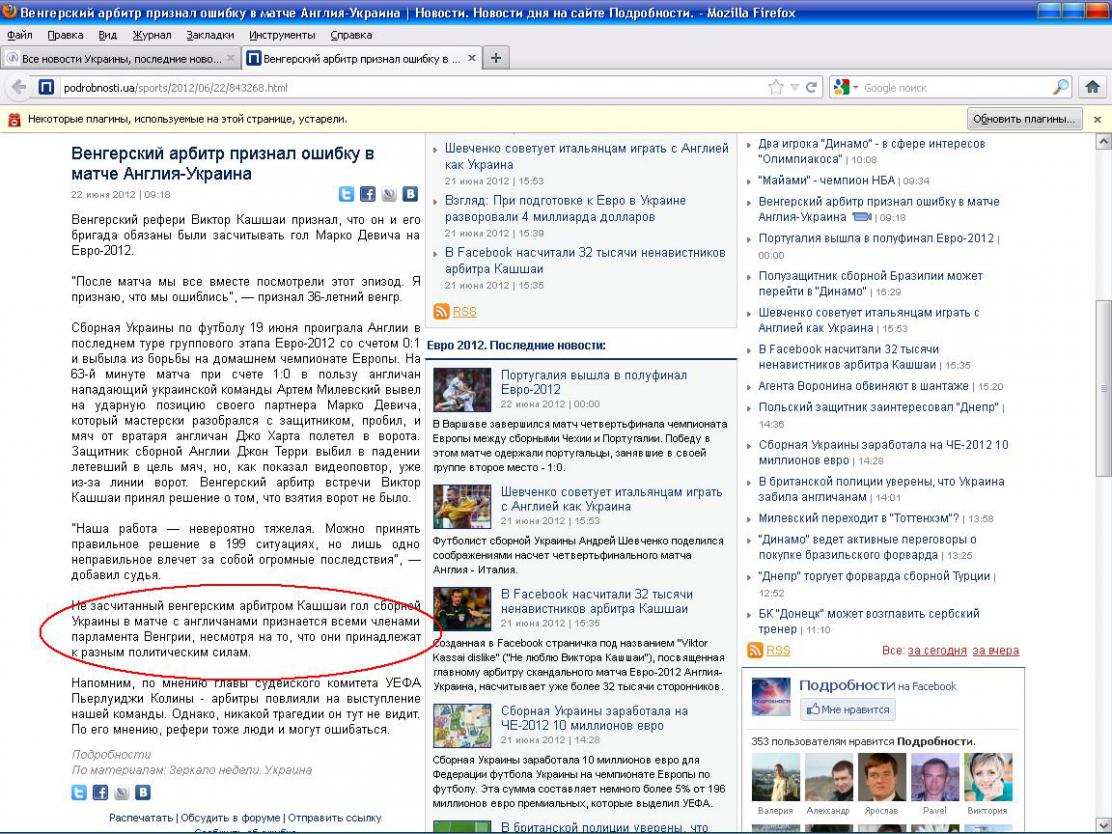 Генеральному прокурору України Пшонці В.П. Щодо порушення кримінальної справи за ознаками корупційних діянь бригади арбітрів на чолі з угорцем Віктором Кашшаї, які умисно не зарахували забитий українською збірною з футболу гол під час матчу Євро-2012 Англія – Україна, що призвело до програшу збірної України та завдало значної шкоди українському народу, суспільству та державі Д Е П У Т А Т С Ь К Е З В Е Р Н Е Н Н Я в порядку статті 16 Закону України “ Про статус народного депутата України ” Шановний Вікторе Павловичу ! На 63-й хвилині матчу Чемпіонату Європи з футболу 2012, Англія-Україна, що відбувся 19 червня 2012 року на стадіоні «Донбас Арена» в місті Донецьку, Марко Девіч, який майстерно розібрався із захисником, пробив, і м'яч від воротаря англійців Джо Харта полетів у ворота. Захисник збірної Англії Джон Террі вибив м'яч, що летів у сітку, однак, як показав відеоповтор, вже з-за лінії воріт. Угорський арбітр Віктор Кашшаї оголосив, що взяття воріт не було. В результаті збірна України програла матч Англії з рахунком 0:1 і вибула з боротьби на домашньому чемпіонаті Європи. На прес-конференції у середу у Варшаві старший офіцер УЄФА у справах суддівства П’єрлуїджі Колліна оголосив імена 4 із 12 арбітрів, які залишають турнір після групового етапу через свою непрофесійність. Крім того, П’єрлуїджі Колліна зазначив, що в У ЄФА визнають, що рішення бригади арбітрів на чолі з угорцем Віктором Кашшаї прийняте під час матчу Євро-2012 Англія - Україна щодо не зарахування забитого українцями голу, є неправильним. Не зарахований гол українця Марко Девіча в матчі зі збірною Англії викликав цілу масу бурхливих емоцій навіть серед британських футбольних експертів. Так, відразу кілька провідних футбольних експертів Англії висловили нерозуміння того, чому арбітр матчу Віктор Кашшаї з Угорщини не зарахував гол у ворота гостей з Туманного Альбіону. Екс-гравець збірної Англії Кріс Веддлі в онлайн трансляції матчу для ВВС написав, що Україна дійсно забила гол. Таким чином, є всі підставі вважати, що бригада арбітрів на чолі з угорцем Віктором Кашшаї, будучи особами уповноваженими здійснювати суддівство матчу Чемпіонату Європи з футболу 2012, Англія-Україна, що відбувся 19 червня 2012 року на стадіоні «Донбас Арена» в місті Донецьку, діючи в інтересах та надаючи переваги футбольній команді збірної Англії, порушуючи вимоги Правил гри у футбол затверджених Міжнародною радою футбольних асоціацій, діючи умисно, не зарахували забитий на 63-й хвилині матчу гол гравця збірної України Марко Девіча у ворота збірної Англії. Вказані дії призвели до того, що команда збірної України програла збірній Англії з рахунком 0:1 і вибула з чемпіонату. Такі дії збурили всю світову футбольну спільноту, завдали значної шкоди суспільству та державі. Крім того, Мішель Платені, перебуваючи на посаді Президента УЄФА, усвідомлюючи очевидність протиправних дій бригади арбітрів на чолі з угорцем Віктором Кашшаї, які умисно не зарахували забитий українською збірною гол під час матчу Євро-2012 Англія – Україна, грубо порушуючи вимоги Статуту Об’єднання Європейських футбольних асоціацій не вжив жодних заходів щодо виправлення ситуації та притягнення бригади арбітрів до відповідальності. Таким чином, як автор Кримінального кодексу України вважаю, що в діях бригади арбітрів на чолі з Віктором К