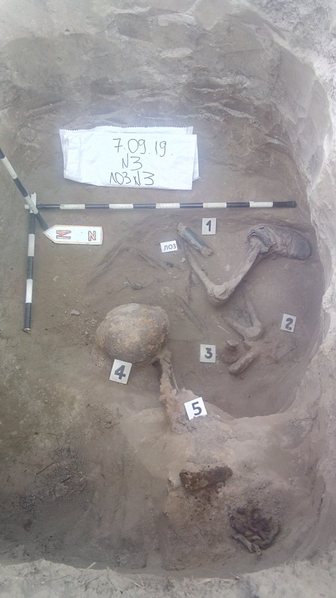 Ні. Шолом теж цілий. Але череп повнісю роздроблений не по швах. При чому зі сторони лиця. Лоз же хтось забрав? Можливо посадили коли лоз шукали. Ми цього вже ніколи не взнаємо.