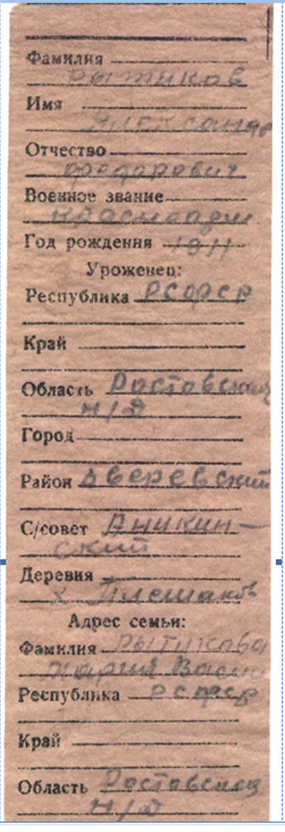 Номер шість-Ритіков Олександр Федорович, 1911 року народження, Ростовська область.