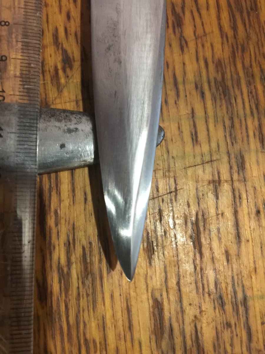 Все правильно сказано. Геометрия моего не совпадает с тем, что выложен в теме. Думаю был ремонт. Реальная длина от гарды около 147 или 148 мм.