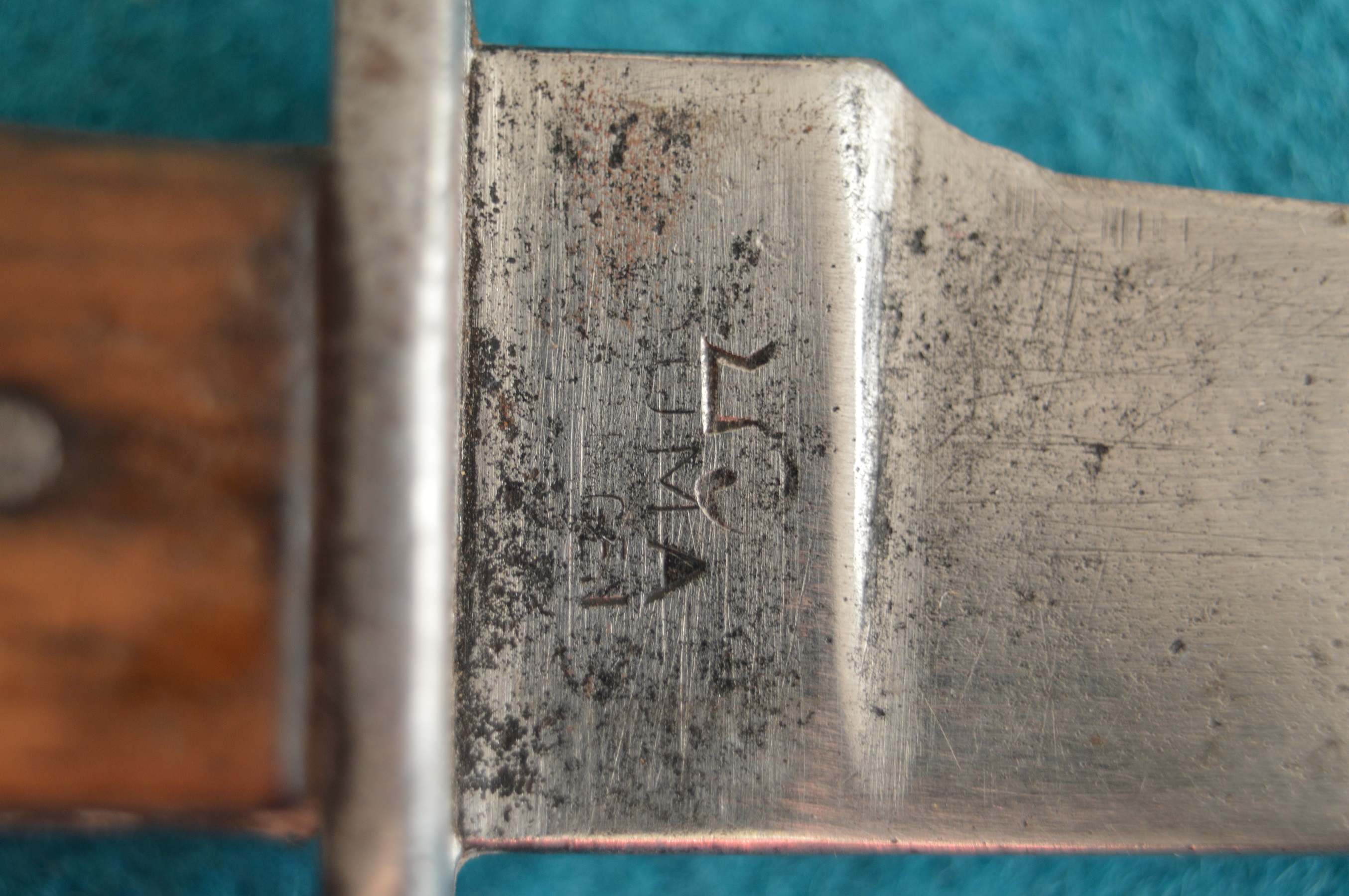 Никаких "клейм приемки" на каких бы то ни было "окопных ножах", за вычетом ножей и стропорезов Люфтваффе, периода Второй мировой не было. От слова совсем, и никогда. В этом периоде, в отличие от первой мировой ножи, которые мы привычно называем "камфмессер", использовались для открывания банок консервов, а не для траншейного боя. И данная модель, до зубов вооруженная штопором и открывашкой тому подтверждение.