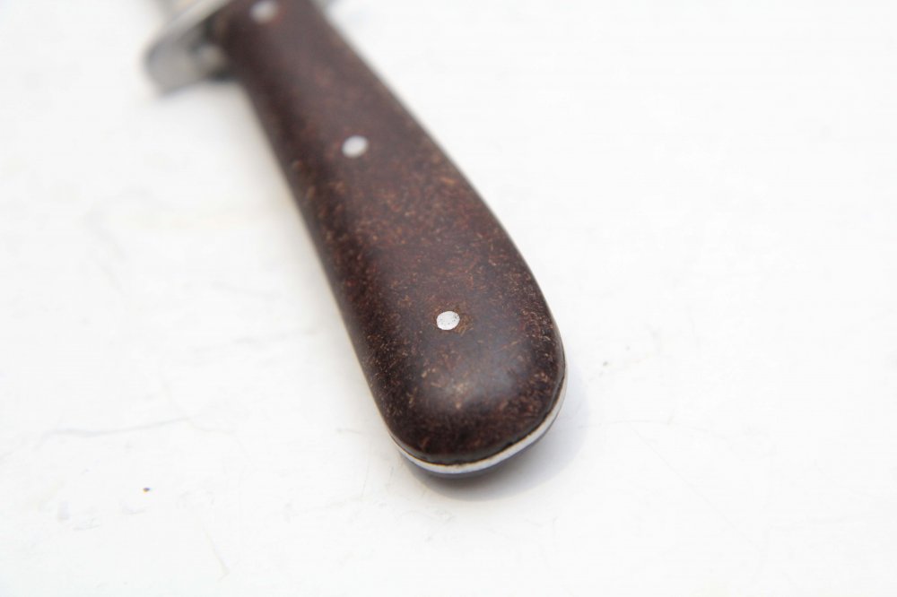 Прошу прощения за свою настойчивость, но даже сняв накладки рукояти, гарду не снять. Всё дело будет в том, что отверстие в гарде будет меньше , чем ширина задней части рукояти, т.к. именно это расширение выполнялось " расплющиванием" металла в задней части рукояти. И опять же именно поэтому толщина металла по спинке рукояти идёт на заужение. Технология, мля. Но всё это теория, практического опыта в подобной работе не имею, но имея нож на руках это сразу становится видно и понятно. Хотя всё на ваше усмотрение.