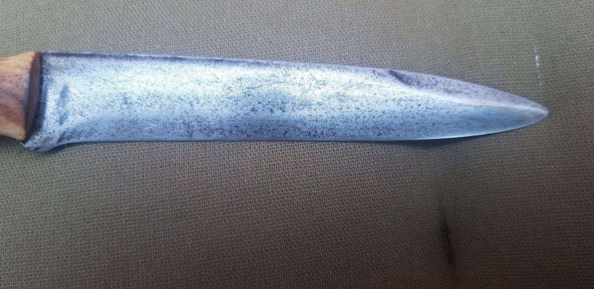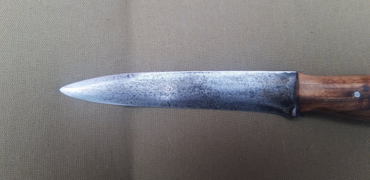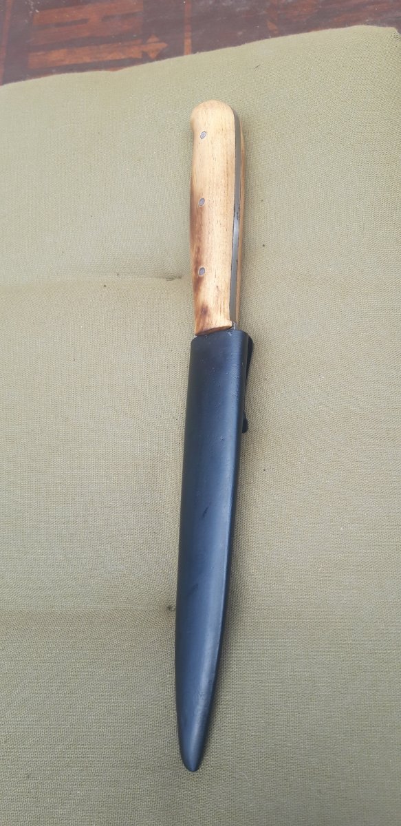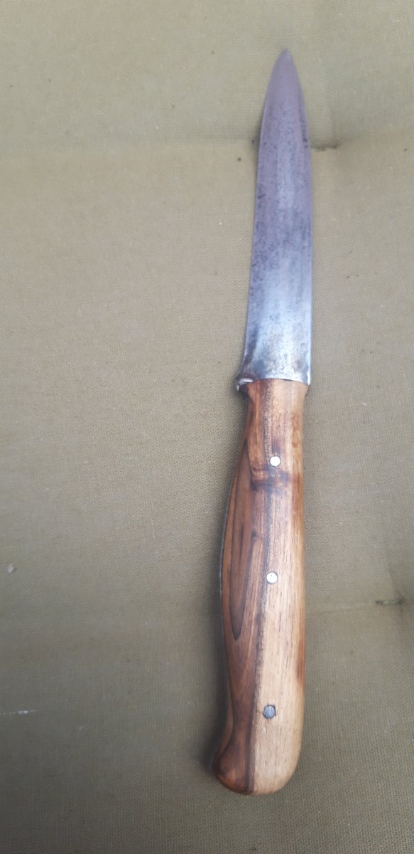 Доcтался вот такой ножик с одной стороны похож на образец 1942 года, но был без гарды вообще. помогите определить предмет, подлинность и примерно его цену?