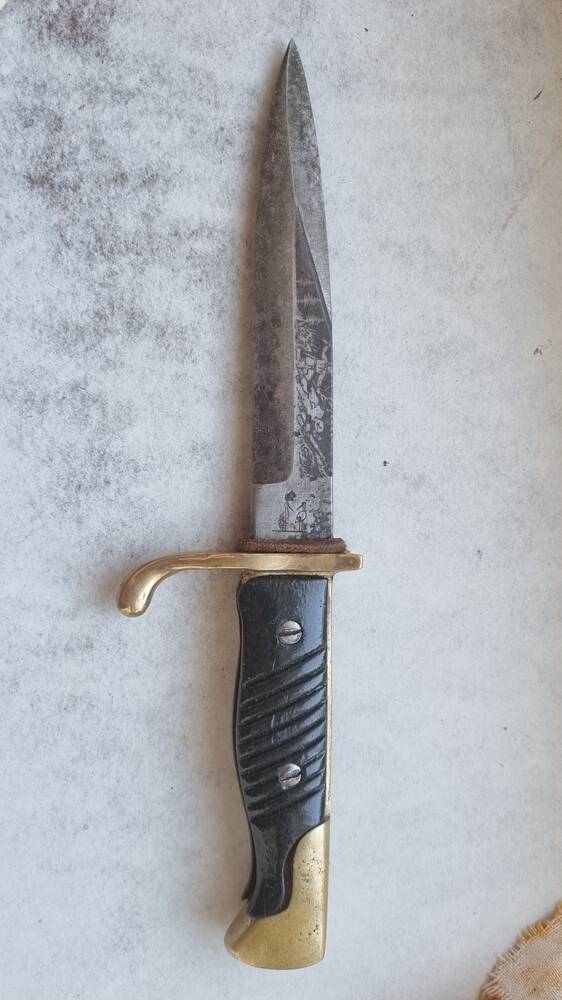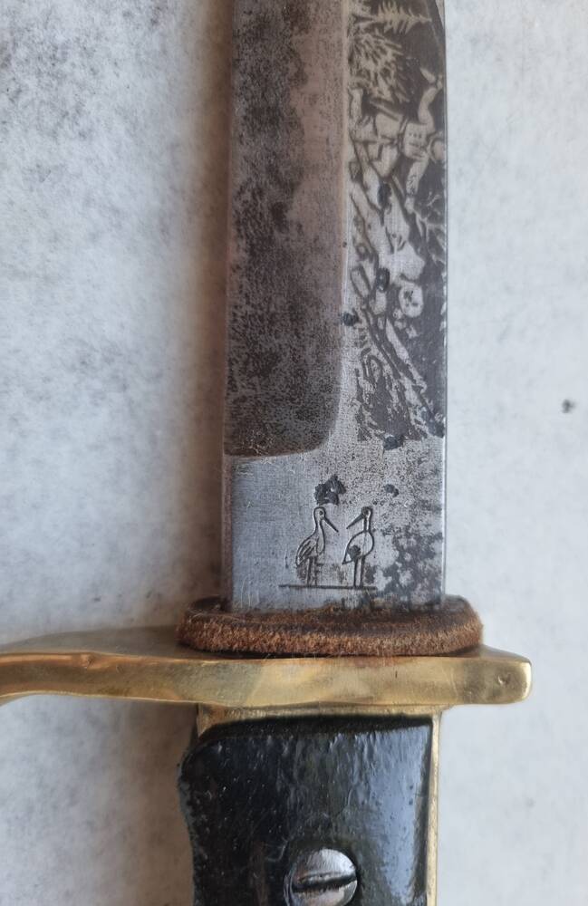 Доброго часу. Будь ласка додайте розміри та фото правої сторони. Клинок 50×50 . Лелекі гарні, але невистачае напису Robert Claas чи Solingen. Були просто без напису но тут є ньюанс, це клейио для ножиць і дрібних розкладних перочинних. А тут легенда( хоч і жах) но робота пророблена а клеймо недопрацьоване,питання чому?. Ще больстер жах, як на рапірі, явно не з нього. Накладки старі но теж щось непасують. А так в загальному плані солянка непогана, но легенда шок))