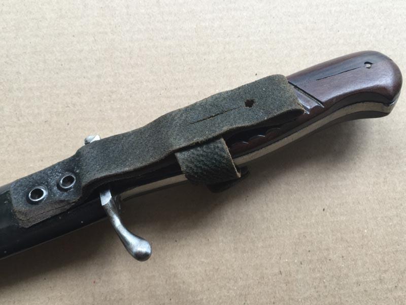- 120 евро. - Клин полирован. - Накладка на рукояти (фото №1,3,5) ремонтная. Можно пж-та фото рукояти, со стороны ремешка крупным планом?