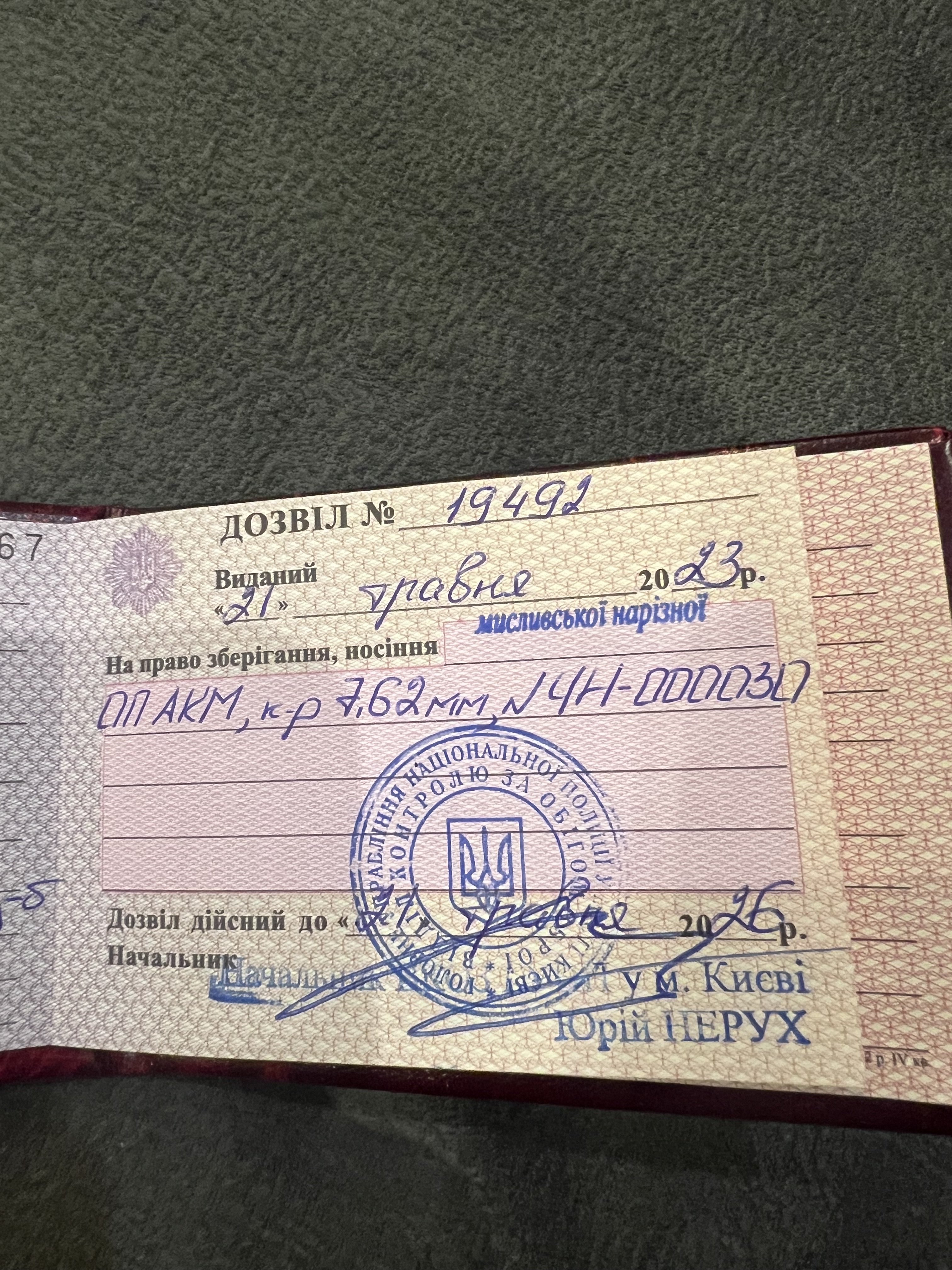 Київ. Продам АКМ 7.62Х39, продаж тільки через дозвільну, у комплекті ще є близько 200 патронів. Якщо є питання о6з9577777.