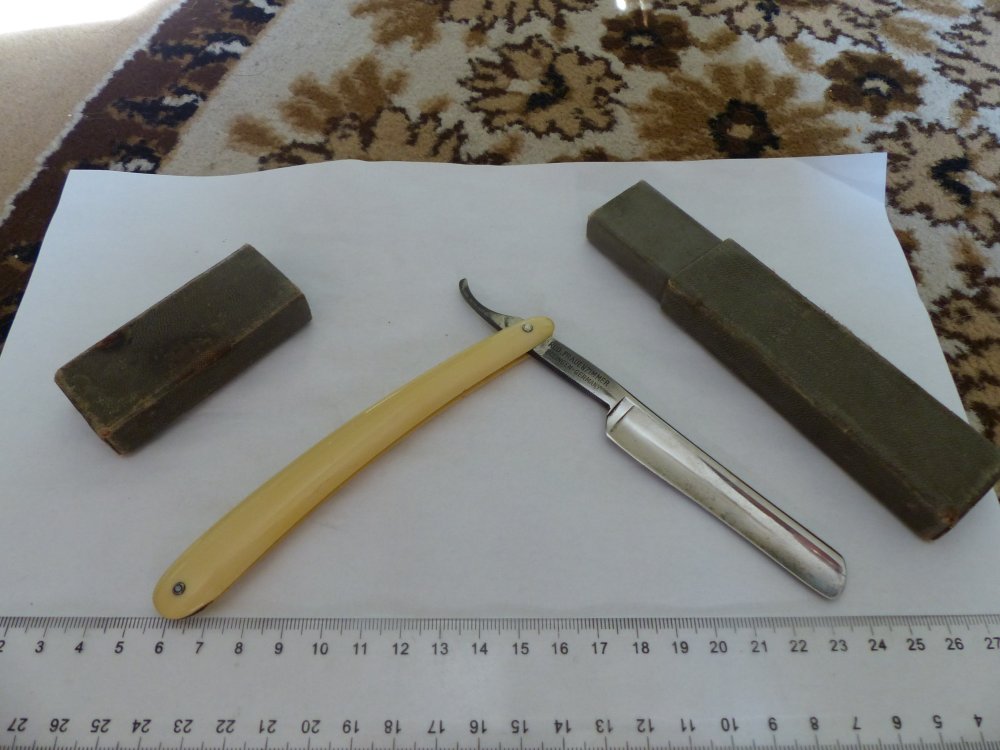 Пожалуй несоглашусь с авторитетным мнением камрада "Jupiter"! За что платить 50 грн.??? Полотно (лезвие) ДВУХЗАКОВНОЙ бритвы фирмы J.A.Henckels, Zwillingswerk (см. фото №1): -требует значительной чистки (на полотне и шейке бритвы есть ржавчина и каверны) -удаления скола до 10 мм. на режущей кромке бритвы в районе «пятки» -изменения геометрии полотна бритвы (формы головки бритвы, ширины полотна и "обушка" бритвы, формирования новой «пятки») -формирование нового размера бритвы прибл. 3/8 дюйма (1 дюйм- 2.54 см.) -аккуратной полировки полотна, клейма и надписи Оправа бритвы (см. фото №2) изготовлена из пластма́ссы производства СССР периода 50 годов предположительно к бритве завода «СТИЗ» Москва и ее ширина соответствует бритве размера 4/8-5/8 дюйма (1 дюйм- 2.54 см.) В таком состоянии бритва требует очень серьезно ремонта (восстановления) всего полотна бритвы, ее вогнутости опытны мастером, изготовления новой оправы (ручка шириной под лезвие 3/8 дюйма) установки новых заклёпок. В Украине сложно найти таких опытных мастеров, да и стоимость работы (исходя из тарифов сложившихся на сегодняшний день в г. Москва) будет стоить не менее 300 грн. Купить оправу производства СССР за 50 грн. и в последующем реставрировать бритву (полотно) от производителя J.A.Henckels, Zwillingswerk смысла нет так как, бритвы торговая марка «близнецы» выпускались массово. Изделия (в т.ч.) с «родными» ручками встречаются (продаются) под торговой маркой "Zwillingswerk J.A.Henckels" и «СТИЗ» довольно часто на различных интернет аукционах (в т.ч. при посредничестве Клуба REIBERT.info) по адекватным, рыночным ценам за 50-80 грн.