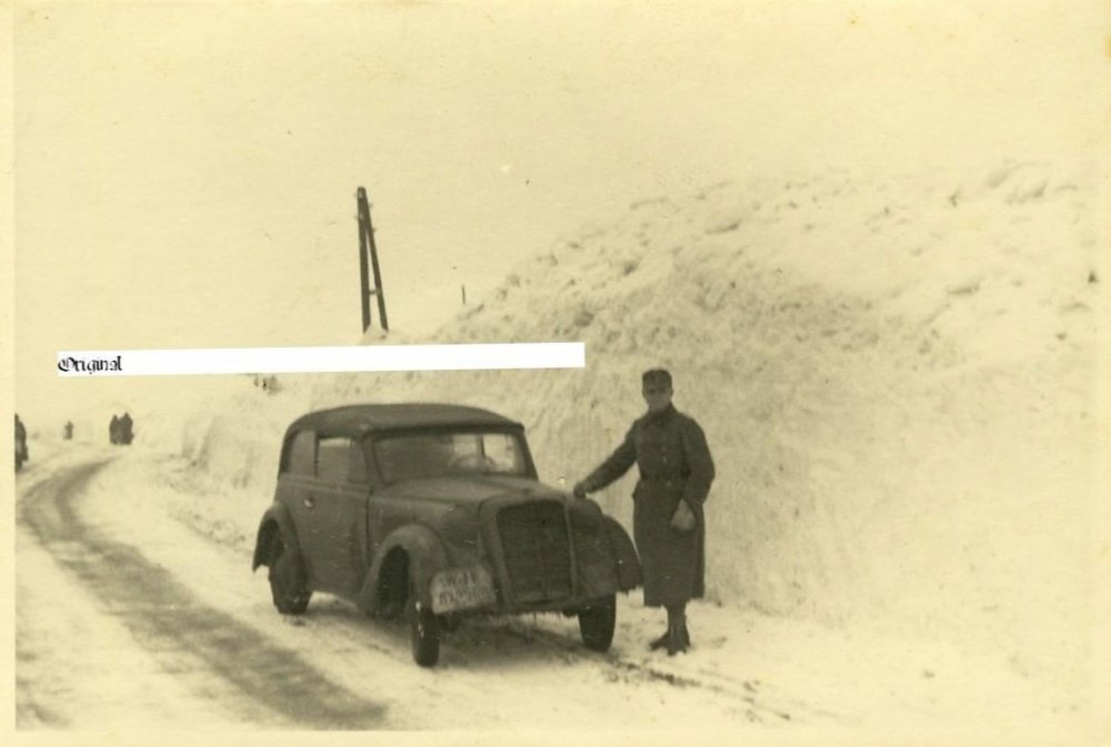 № 13-Renault Juvaquatre, № 12,17-20 - Kadett K38.Причём №17 и 18 с самодельными облицовками радиатора.Очень интересное фото № 12 : на солдате немецкая форма без знаков различия, и номера на автомобиле имеют буквенный индекс RU. Русские добровольцы в составе Вермахта?