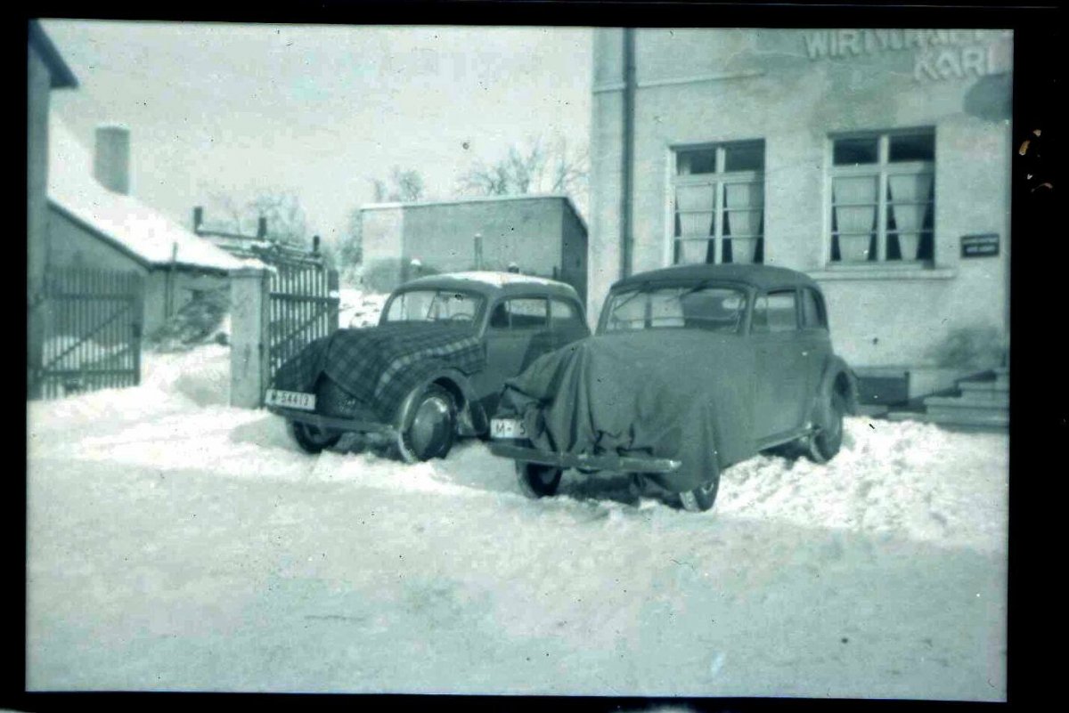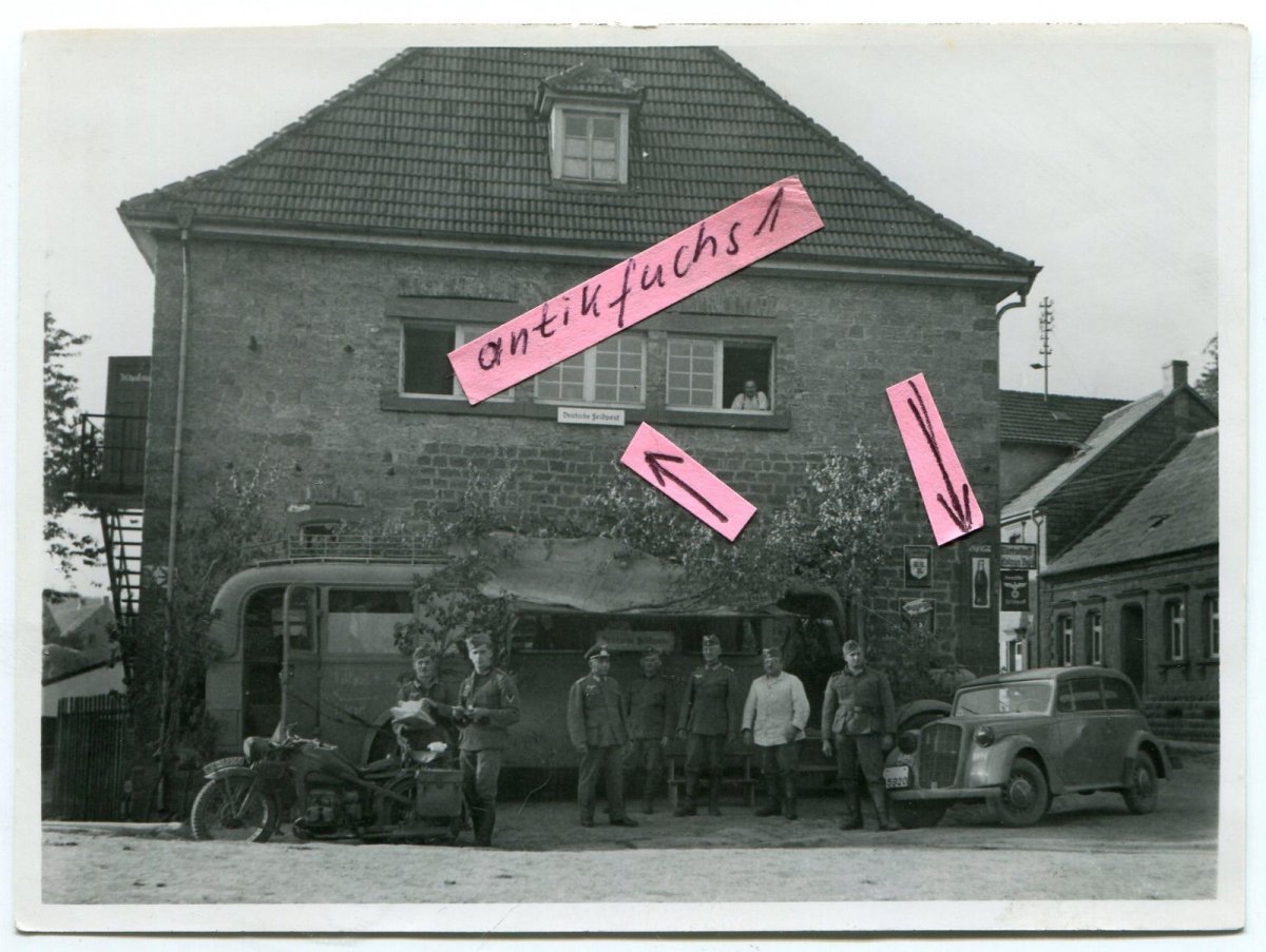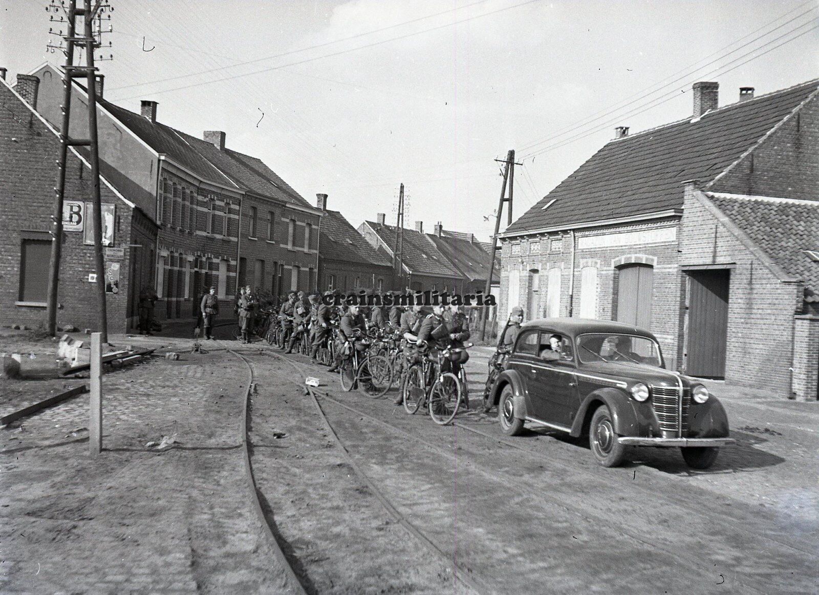 1) Pkw und tschechische Offiziere bei Eingang einer Kaserne, anl. Auflösung der tschechischen Armee in Tschechien, März 1939... Raum Prag / Kolbin? 2) Vormarschkolonne der 5.ID sowie Pkw mit Truppenkennzeichen in zerstörtes Ortschaft in Frankreich, 1940