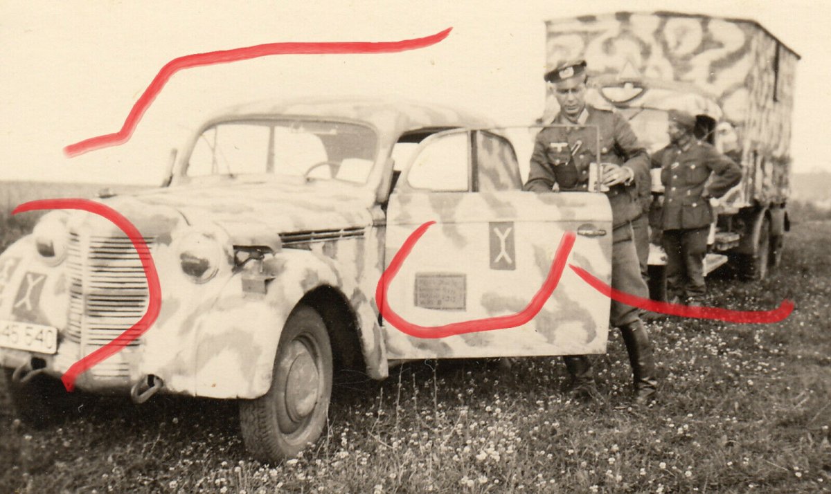 На первом фото машина из состава 46.Jnfanterie-Division, эмблема Прыгающий Олень. Подскажите марку Опеля