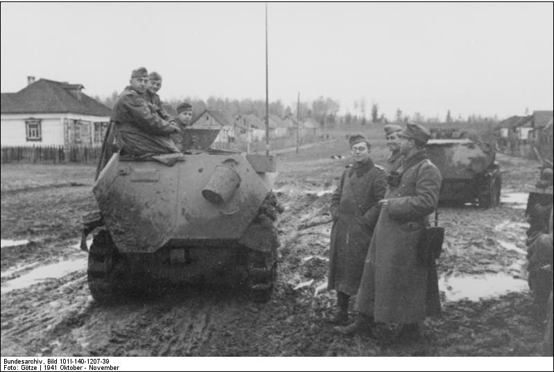 распутица осенью 1941... уже по двум фоткам заметно пагубное влияние на скорость продвижения техники машины тупо не едут