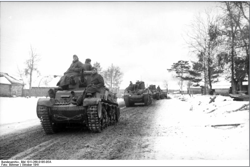 Я читал документы 46 тк, куда входила 5-я танковая дивизия. Она реально в октябре со всего размаху въехала по самые уши в такое место, где дорога была только на карте. Неделю, а то и больше немцы строили гать. Соседи слева и справа смогли за это время продвинуться чуть больше. После этого 5-я тд ждала вместе с соседями пока подмёрзнет земля и начнётся общее наступление. Если посмотреть на кусочек карты от 12 ноября 1941 года, то хорошо видно, что 5-я танковая дивизия находится у основания своеобразной "вилки", где она застряла в октябре. Там образовалась своеобразная зона ничейной земли, куда периодически наезжали то наши, то немецкие разведгруппы. Потом, если не ошибаюсь, числа 13 ноября 5-я тд получила приказ выдвинуться вперёд, чтобы спрямить фронт и занять исходные позиции для наступления на одной линии со 2-й тд и 10-й тд. Не встречая сопротивления они "выползли"перёд. Ну а дальше уже пошли тяжелейшие бои на Волоколамском шоссе.