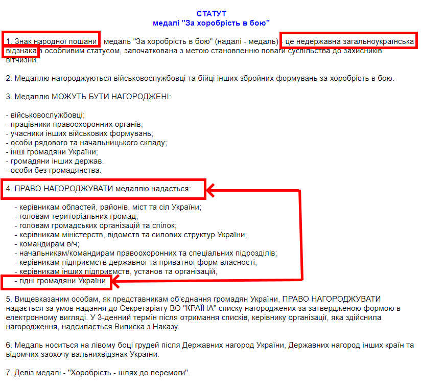 Сейчас придумано кучи всяких разводов для лохов с высоким ЧСВ. Можно напечатать статью в журнале про себя. Можно заказать видео про себя. А можно наградить себя каким небудь орденом . Полно гражданских Лохоорденов и полно военных Лохоорденов. В статусе этой меали сказано! Це не державна Українська відзнака! А награждать ею могут все кому не лень! "Гідні громадяні України" Я GVV2309 гідний громадянит України видаю указ ! Указ N 001 Всі громадяни (Окрім кацапів) які хоч раз зайшли на форум https://reibert.info/ Нагороджуються Знаком народної пошани - медаль "За хоробрість в бою" За геройське протистояння кацапам на цьому форумі! Дата 7 4 2020 підпис