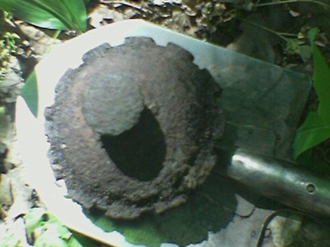 Среди массы металлохлама встретилас такая крышечка Диаметр ок. 15 см с выростом... Раньше имела место ее конрагайка (такие же зубцы под ключ) и ключик... Подозрение, что это колпак накат.-откат. механизма (?) Какие будут мнения?