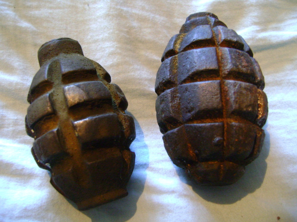 На 1 и 3 фото французкая оразца 1915г.На втором обычная лимонка немного другой формы(ведь разные были).Как по мне, то это лимонка на фото 2 - познего выпуска:rolleyes:.По крайней мере очень похожа.
