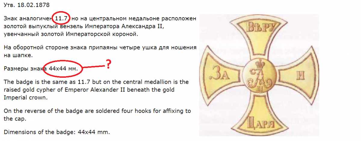 И узнал, что в период царствования его, якобы такие знаки не раздавались, так как не было оснований собирать ополчение. И значит в этот период они не изготавливались?