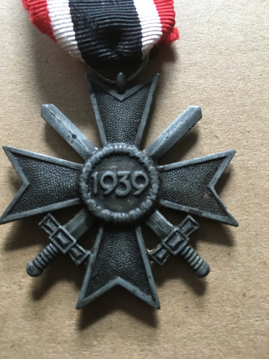 Добрый день, друзья. Есть у меня значок гитлерюгенд, железный крест 1 степени и крест с мечами за заслуги. Помогите, пожалуйста определить подлинность этих вещей и их цену. На кресте за заслуги лента и кольцо - новодел, а сам крест - не знаю.