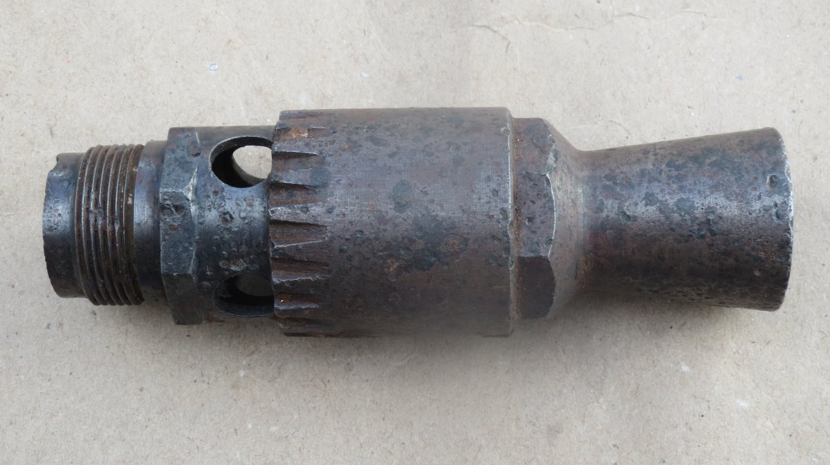 Здравствуйте уважаемые камрады! Помогите пожалуйста определить деталь похожую на ручку. Найдена вместе с деталью от МГ 39, на фото показываю. На первом фото деталь от МГ, не знаю как называется. На последующих фото определяемая деталь. Спасибо! С уважением.