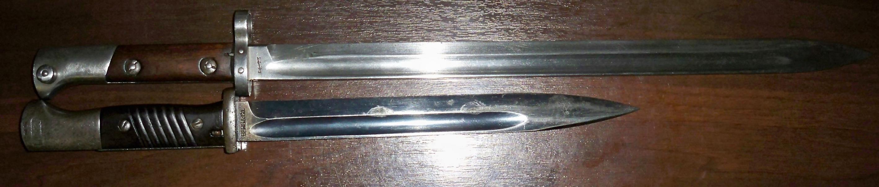 Господа Камрады!Мне кажется что это не два отдельных штыка, кольцо несомненно варили (подваривали), но штык цельный. не видно изменения цвета металла на клинке, который обязательно должен появиться при использовании сварки. Как думаете???