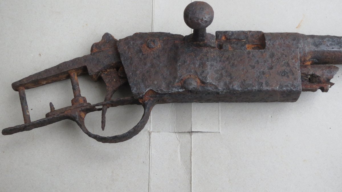 Погорілець( відпаяні деякі елементи)? Гвинтівка під димний порох: короткий пеньок ствола,прицільна планка без хомутів. Бокове кріплення байонета ,переднє кільце з приливом ,та переднє прицільне характерне для Гра-Кропачека М 1884. Пане Євграфь вкажіть будь ласка довжину ствола?З повагою.