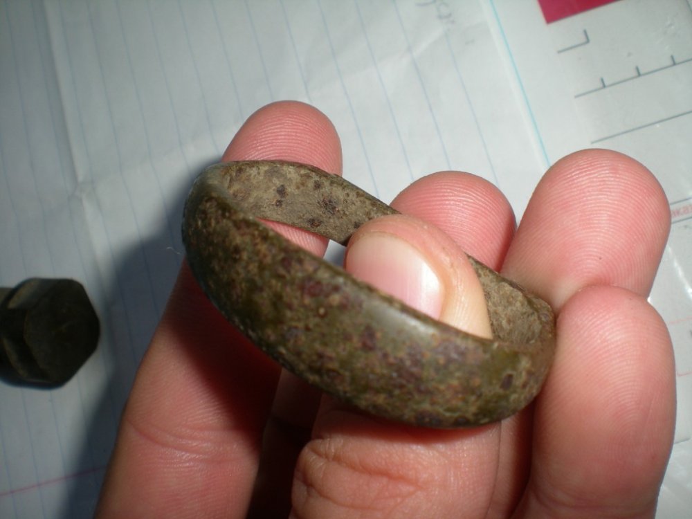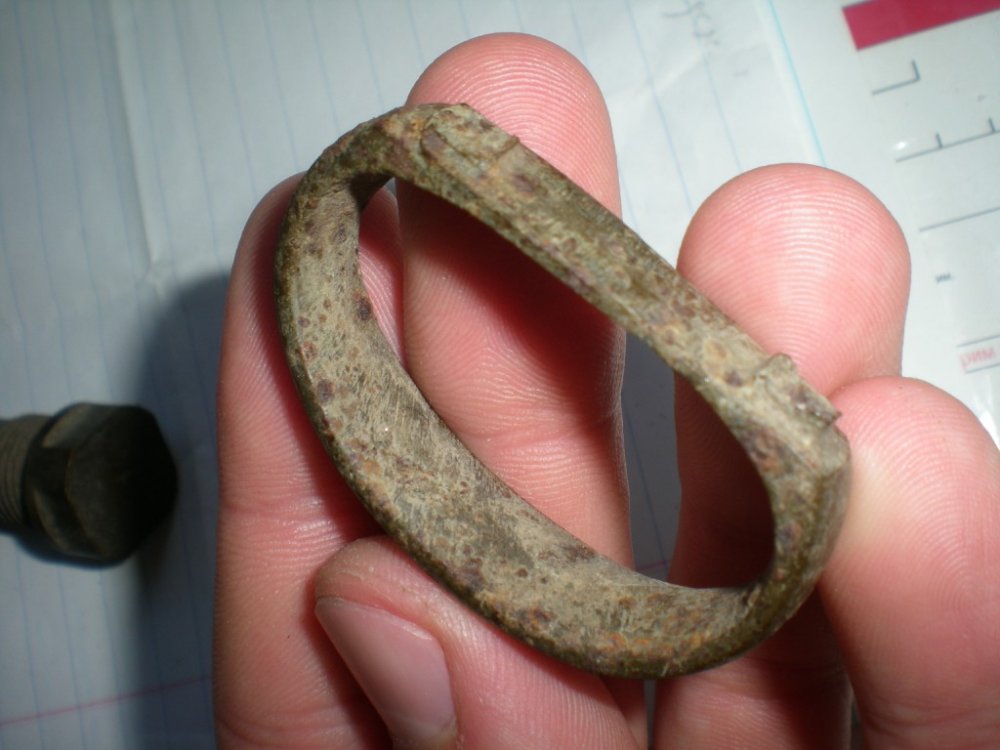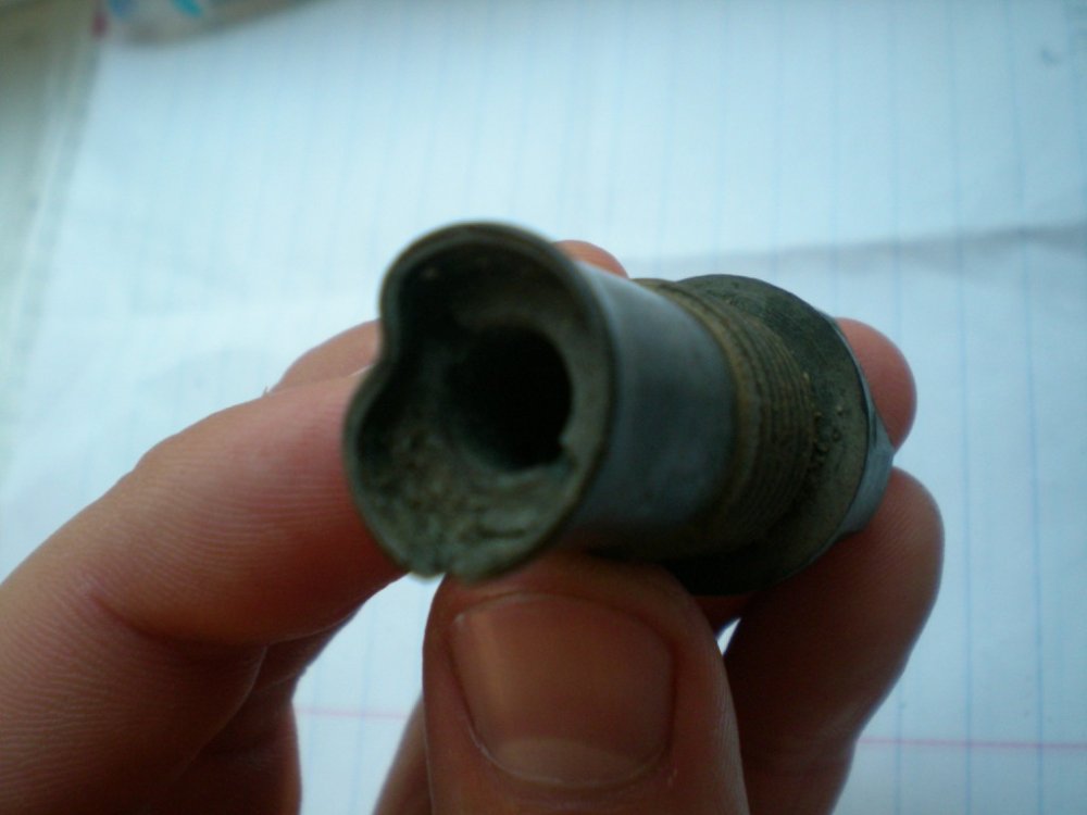 Ну минье и наган - это и так понятно) Насчет заглушки не согласен, жбонь тяжелая, латунная, смахивает на какую-нибудь капсюльную втулку. Кольцо от ножен тоже вряд ли, скорее напоминает бронзовую ручку, отломанную от бронзовой чашки БОльшая пуля похоже бердан. Меньшая вроде того же калибра, но имеет другое колическво и глубину нарезов