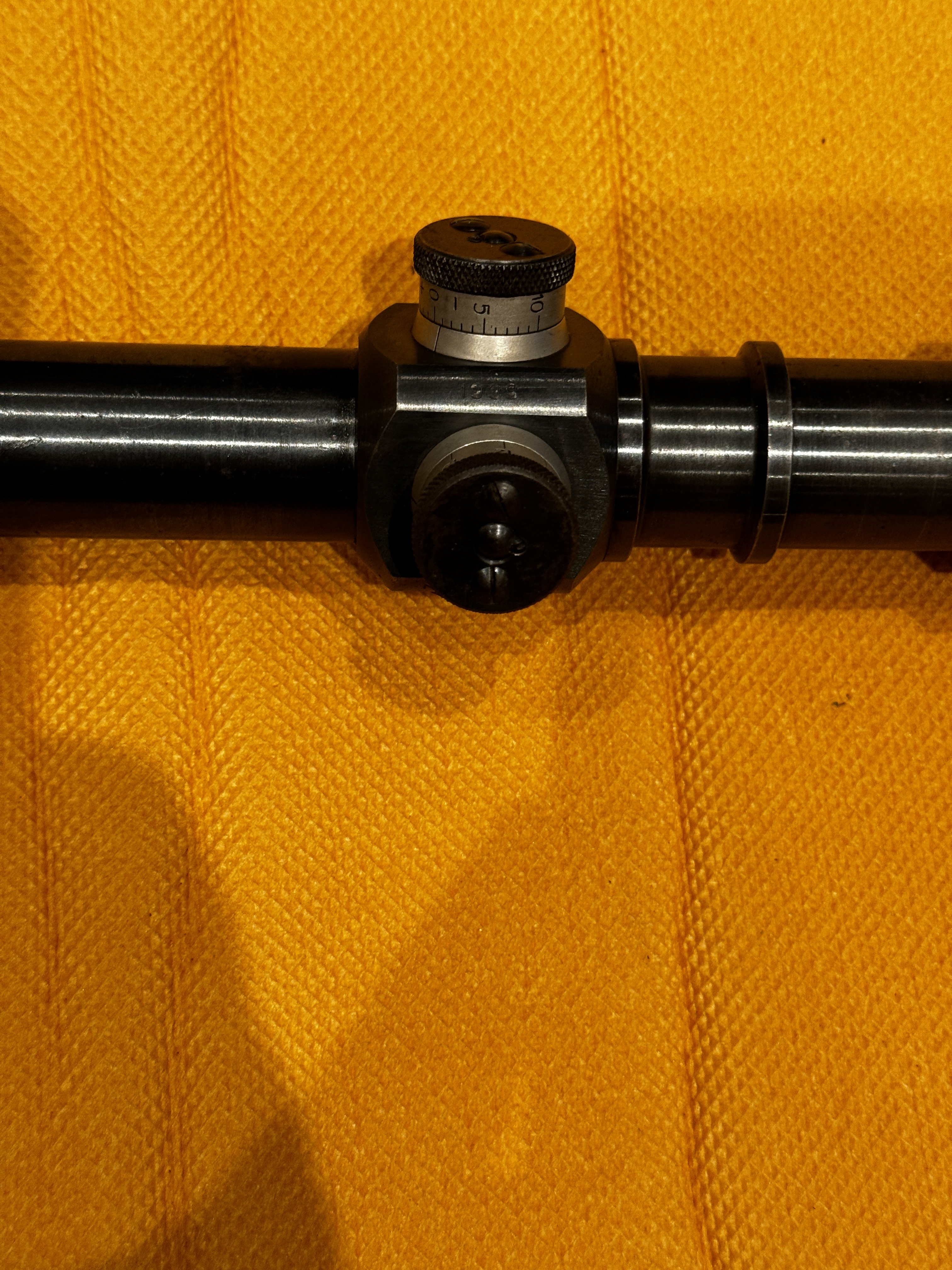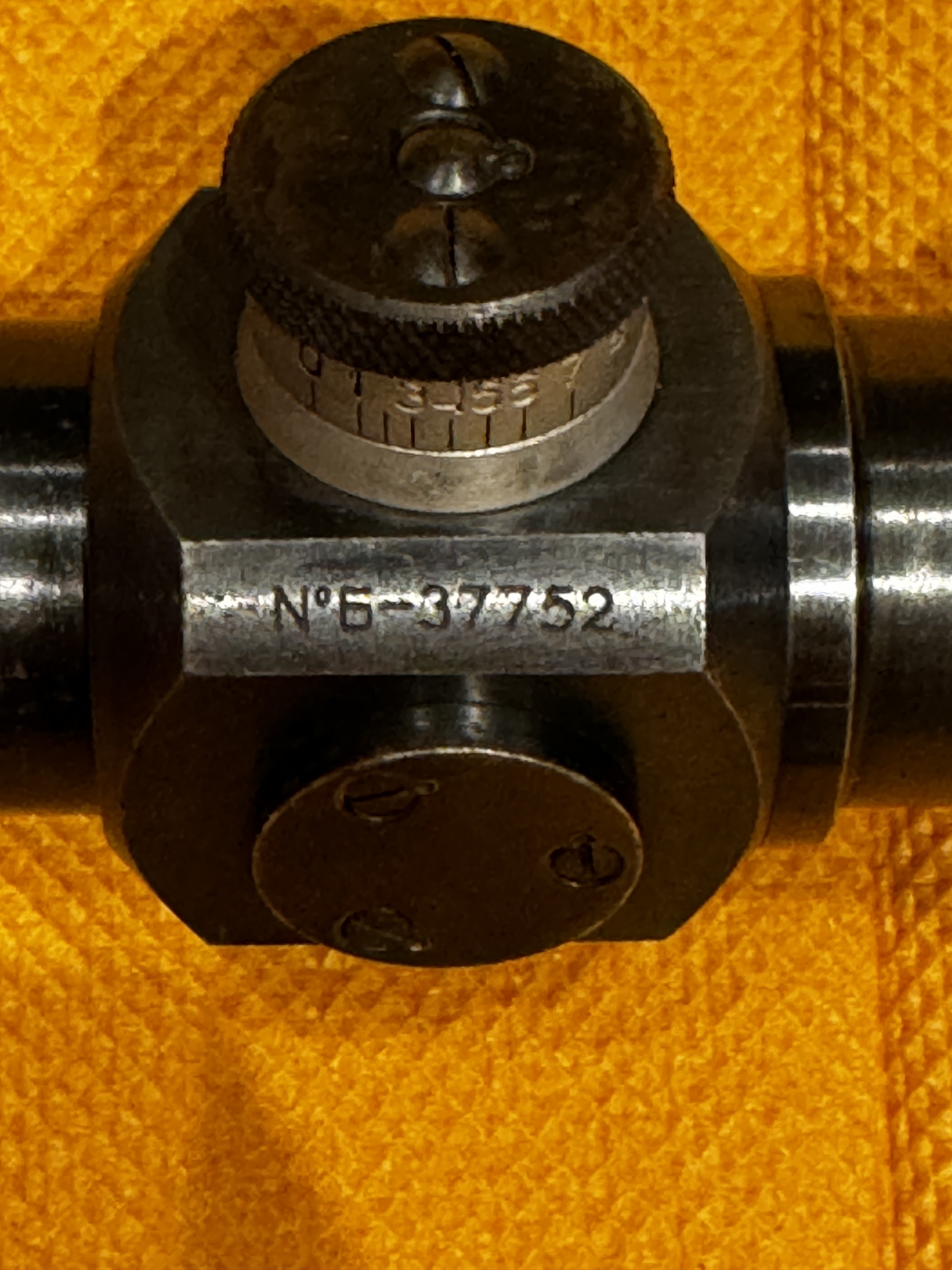 Видится подлинный (не копия) 4-х кратный оптический прицел ПЕ образца 1931 г., 1939 г. выпуска, производства завода "Прогресс", №357, Ленинград.