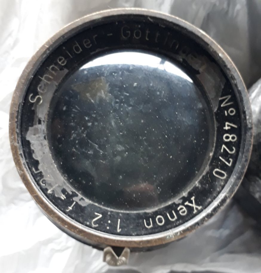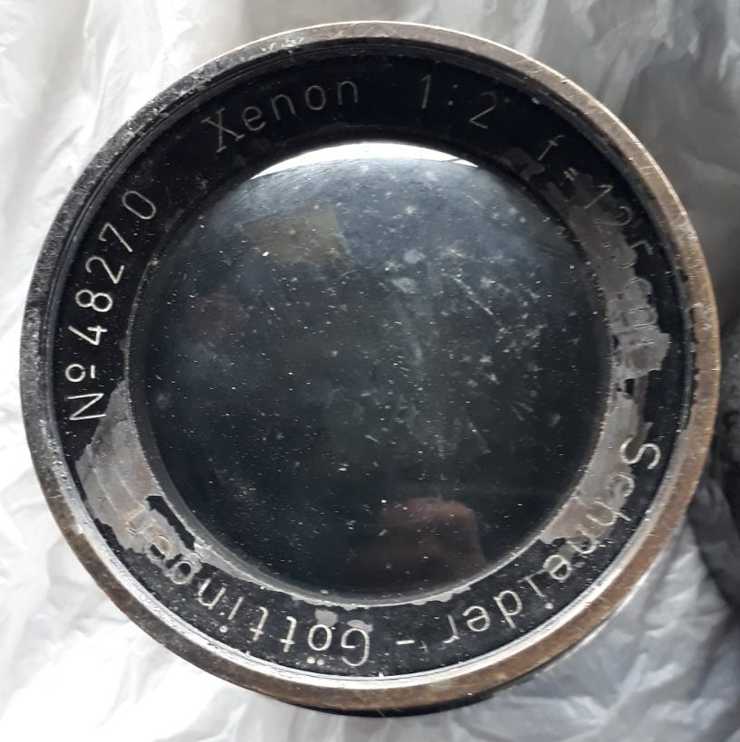 Добрый день! Немецкий светосильный объектив Sechneider-Gottingen Xenon 1:2 f=12.5 cm. Считается редким. Эти объективы использовались в том числе и Luftwaffe в годы ВМВ для аэрофотосъёмки: https://st.violity.com/auction/big/auctions/99/90/11/99901102.jpg, http://lens-club.ru/public/files/img/b92892615de4d593e4b838be4d5dad4d.jpg. Только вот не понимаю, почему в моих примерах в гравировке названия пропущена литера "е", хотя по зав.номерам, похоже, Ваш и один из "примеров" - одна пария). Не спец в немецком, но переводчику "нравиться" Ваш вариант надписи. Может быть приведенные мной примеры - копии из Поднебесной?