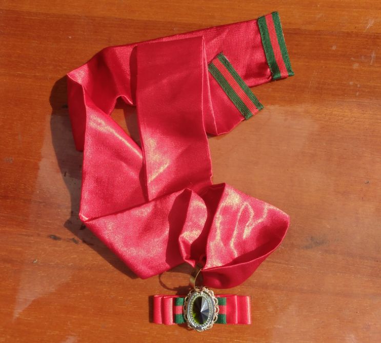 Добавлю, что такая расцветка ленты - это традиционные цвета фирмы Gucci.