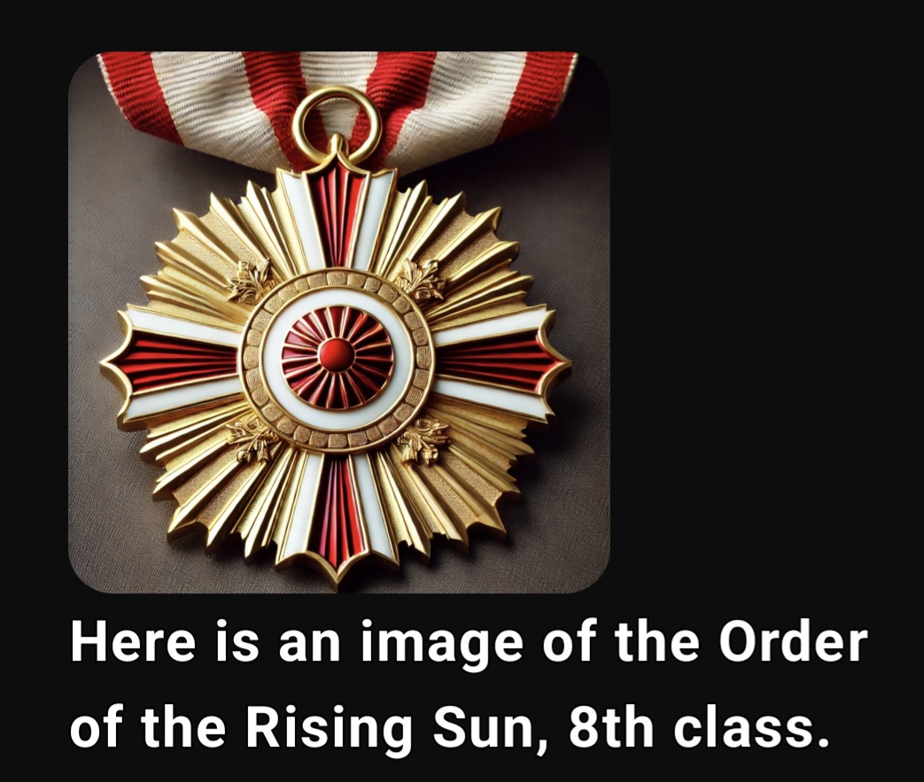 К сожалению правилами запрещено ссылки сюда закидывать. Это 100% Орден Восходящего солнца 8 степени. Их просто не меряно продается на различных резервах