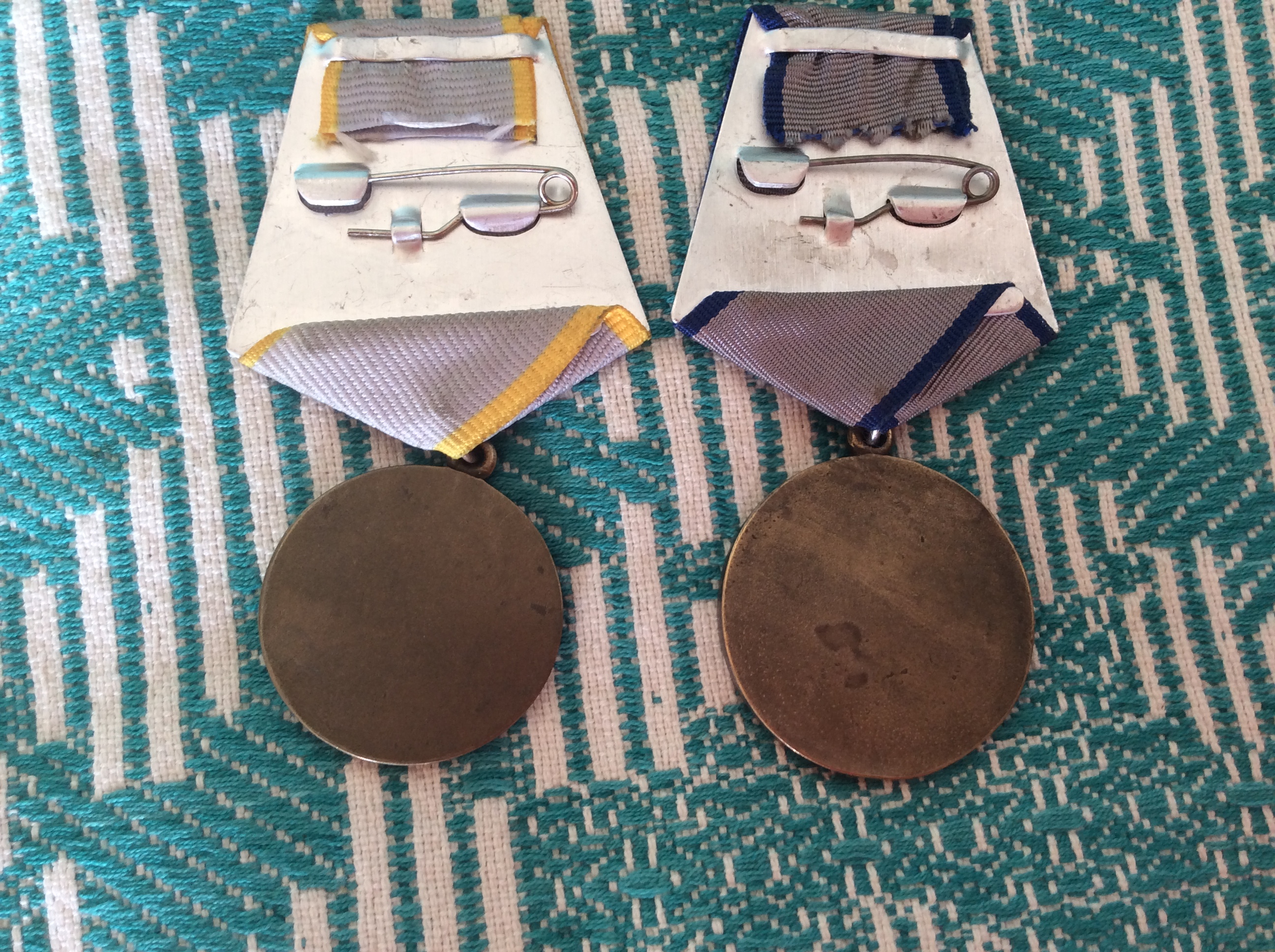У меня больше сомнений по Красному Знамени. Номер винтовой, а следов переделки и близко не видно. Медали (судя по таким фото) послевоенные. Подделывать их не было смысла. Проверьте на серебро и сами поймете картину.