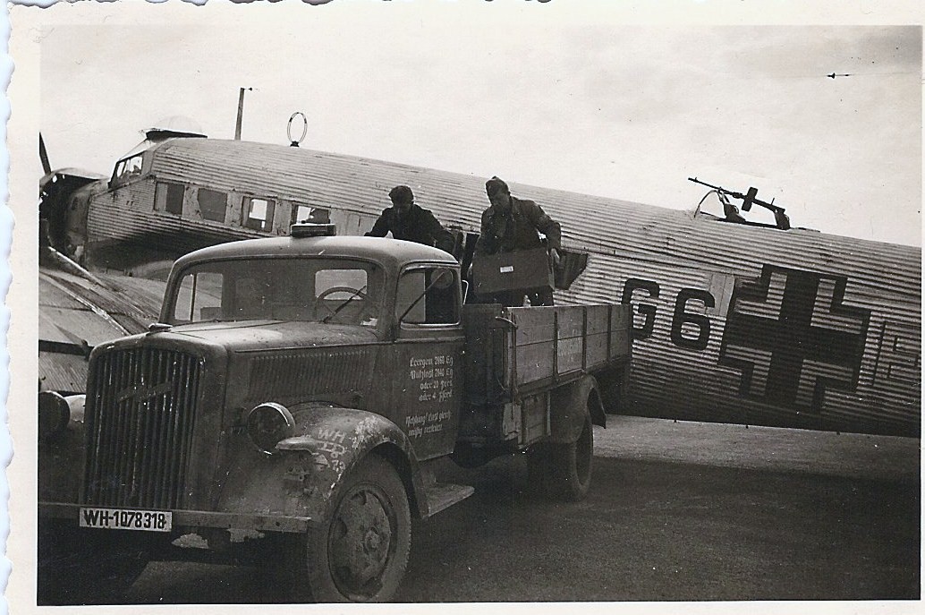 1.Opel Blitz "Maultier" со срезанной кабиной. 2.Вероятно это сделано для лучшей транспортировки VW 82 В условиях зимы как-то не очень комфортно.