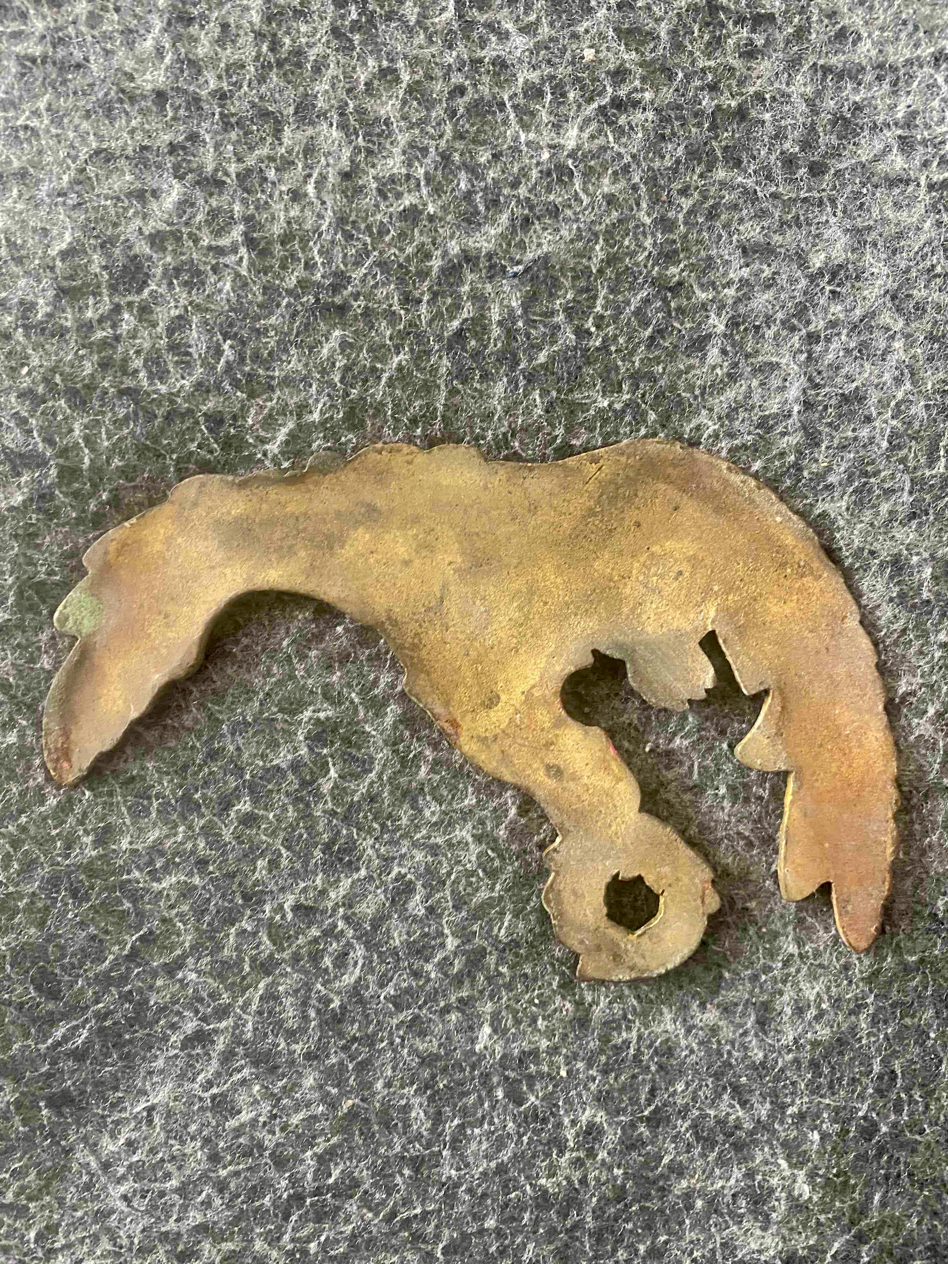 Ось за виконанням трохи схожа на Вашу, 14х8 см https://archiwum.allegro.pl/oferta/stara-mosiezna-gapa-pilota-14-cm-lotnictwo-i14787395099.html Проте на Вашій краще деталювання.