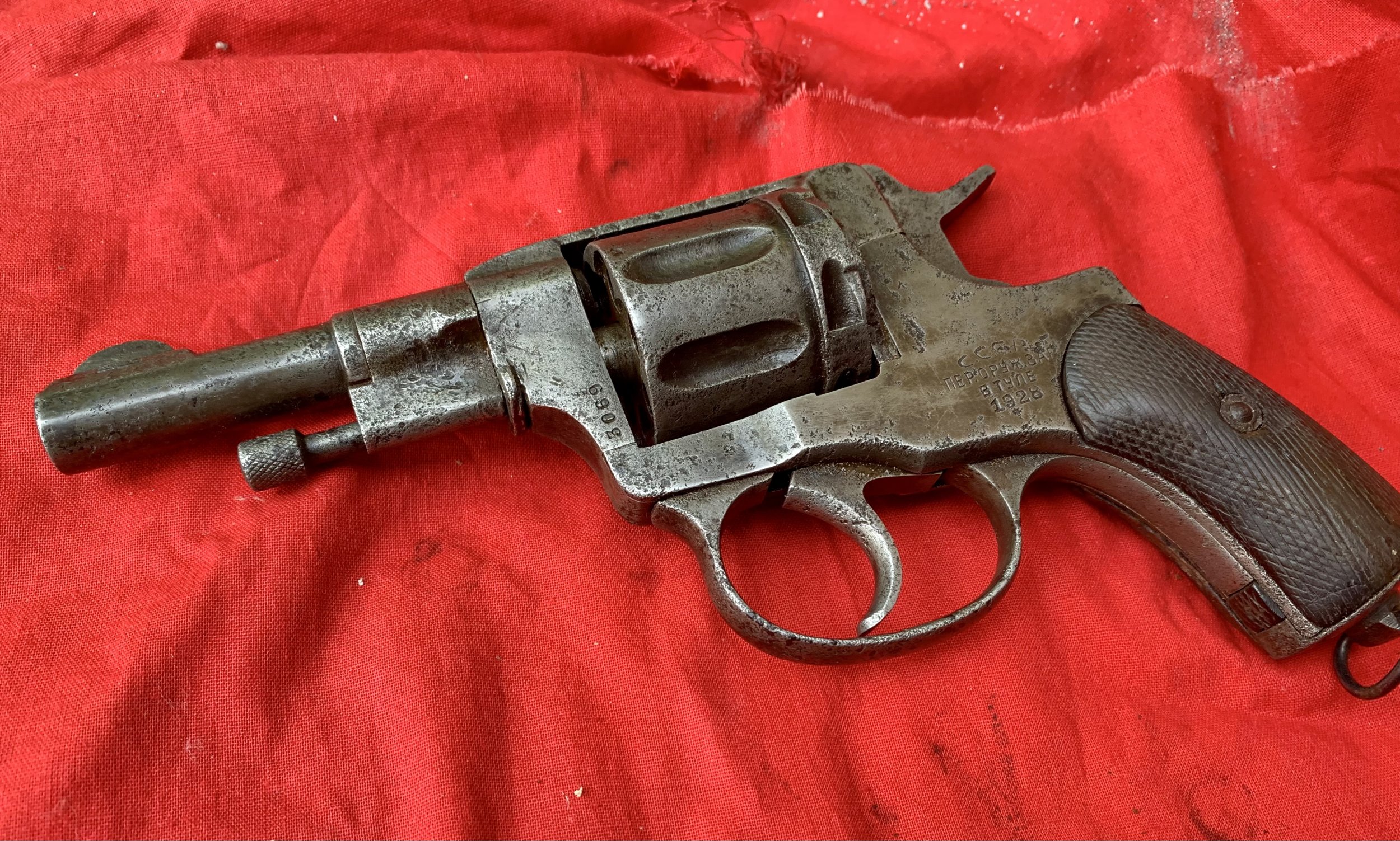 Этот предмет , даже в таком состоянии достаточно редкий экземпляр. И нельзя его сравнивать с обычным наганом.
