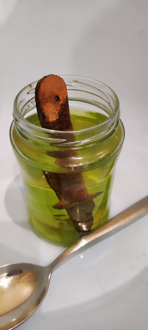 В прошлом году я приобрёл очередной нож Puma, модель с клинком боуи и цинковой крестовиной. И всё бы хорошо, но у того ножа не было фляста (для простоты понимания, будем так называть эту кожульку, которая является прокладкой между крестовиной и устьем ножен). На эту модель шёл оригинальный фляст, который выглядит, как слоёный пирог из прессштоффа и клееёнки. Его абсолютно нереально купить отдельно. И тут я вспомнил, что у меня с давних лет, где-то валяется огрызок Пумы с Кольского полуострова по копу по тамошним горным егерям. Клинок утрачен, но фляст-то ещё на месте! Размачивая огрызок в щавелевой кислоте и мыльном растворе, растворяя ржавые залипухи, мне удалось безболезненно снять щёчки и фляст с того артефакта. Потом помыл тот фляст, размягчил и установил на свежеприобретённую Пуму. Занял своё место, как родной!