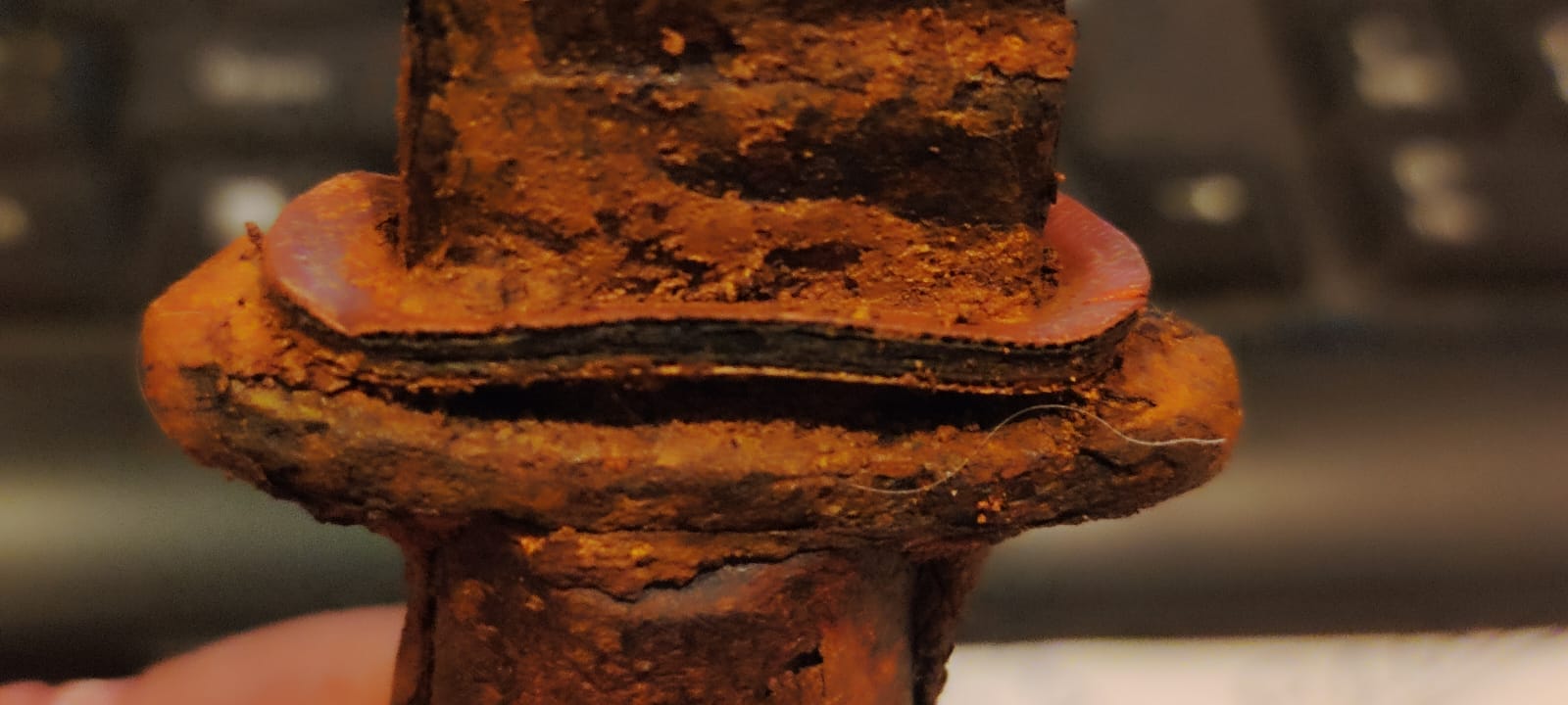 Тут у меня ещё хорошо, что крестовина железная на доноре, а дядьки знакомые присылали фото своих находок, что цинковая крестовина уходит без следа и фляст за ними тоже. Остаётся только видимость скелета - посадочное место на горячий обжим. Бакелит практически не повержен разрушению за те 80+ лет.