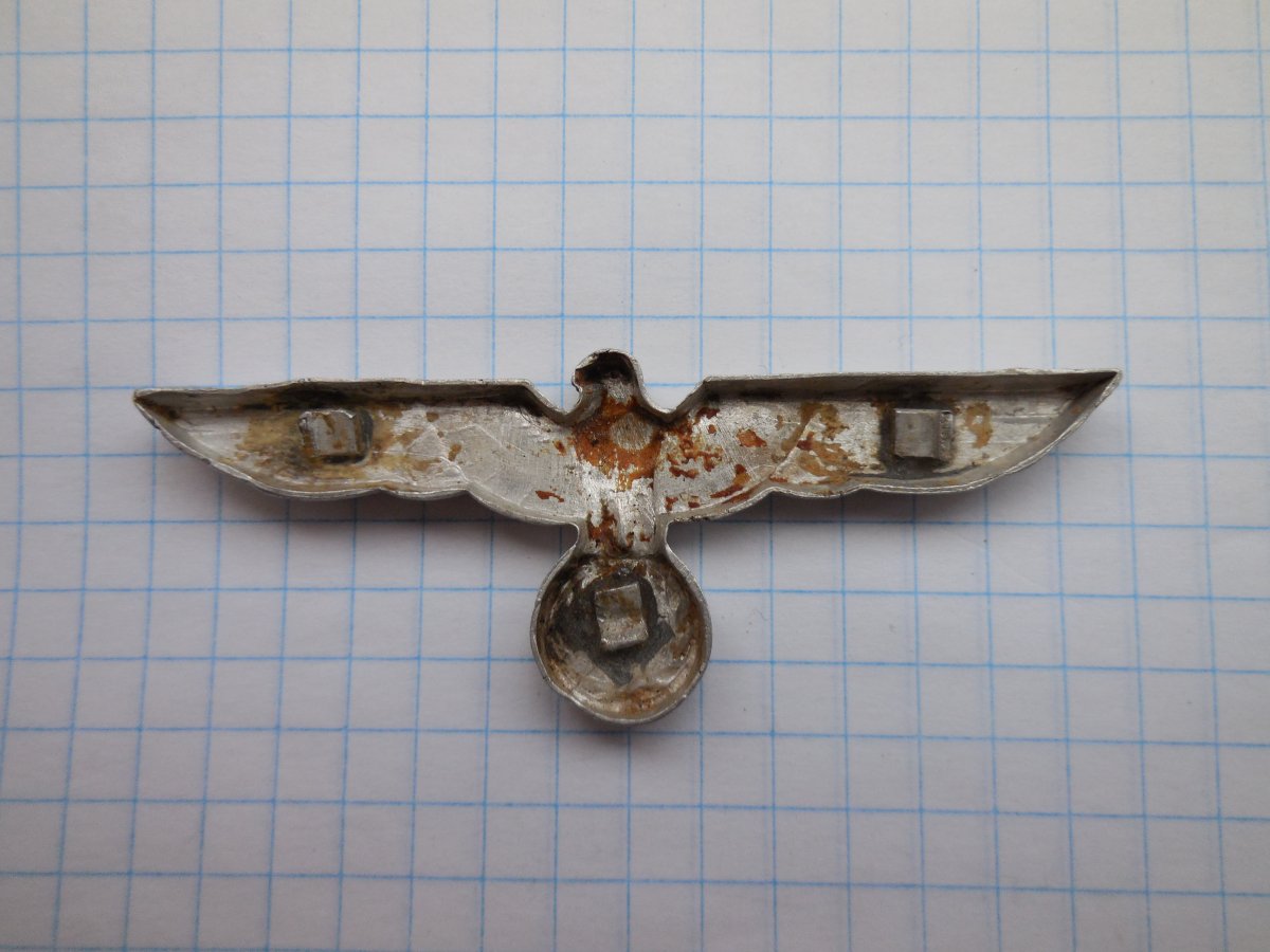 В этом и есть вопрос,орёл копанный и давненько (это предистория прошлого владельца)при детальном изучении видна патинка местами и мелкая сыпь по орлу ,хорошо видна на крыльях снизу и сверху,свойственна алюминию из земли,как на жетонах,но среди известных исполнений в нете на такого не наткнулся,есть похожие но точно такого не нашел.Находил с такими лапками,с таким припоем,но сам орёл выполнен с внутренним рельефом,натыкался без внутреннего рельефа но с лапками круглой формы.Среди копий такого не нашел.Планирую продавать,хочу определиться с подлинностью. С УВ.Дмитрий
