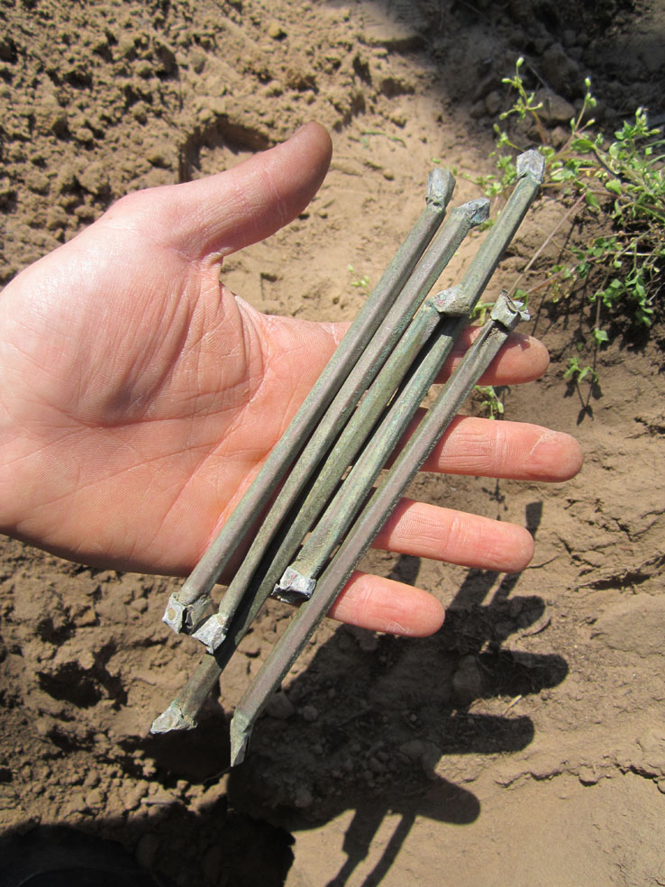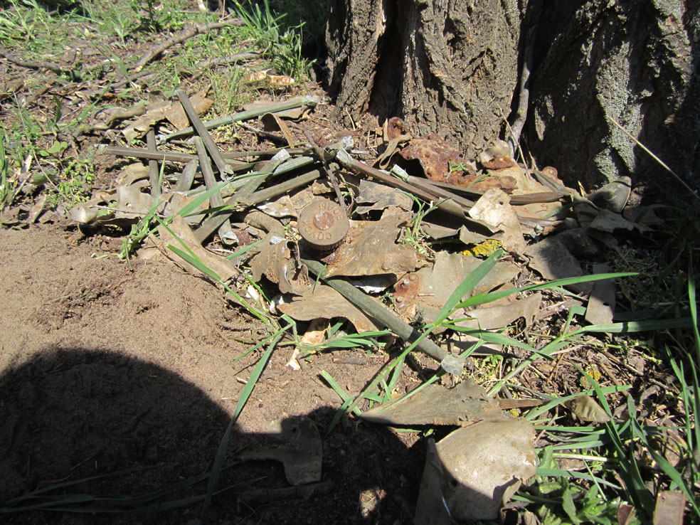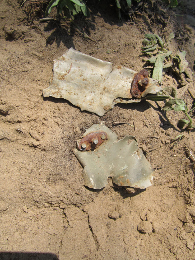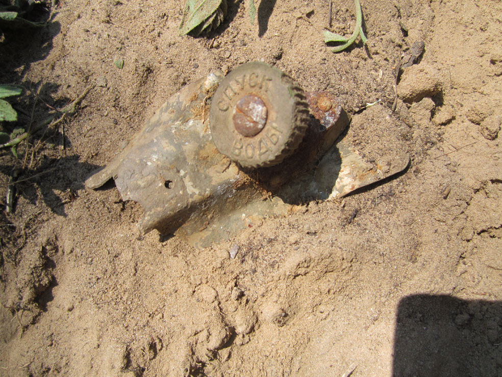 Однажды один пожилой местный житель показал в леске место, где они в детстве собирали куски алюминия с упавшего самолета, место было обследовано сначала обычным, верховым, металлоискателем. Было поднято масса небольших фрагментов, когда верховой прибор перестал брать какой либо металл, мы воспользовались глубинным прибором! Была надежда, что более крупные фрагменты окажутся на глубине, но, все последующие найденные фрагменты были тоже малы и лежали на относительно небольшой глубине. Поляна с обломками достаточно мала, метров 10х10, я понимаю, что мы наткнулись скорее всего на фрагмент самолета, основная часть могла быть в стороне! Интересно еще и то, что метрах в двухста попадаются другие авиа фрагменты, возможно - это один и тот же самолет, который мог начать рассыпаться в воздухе... В последний раз при помощи глубинника были найдены фрагменты показанные на фото, попались части звеньев пулеметных лент, латунные трубки шестигранного сечения и самая яркая находка, латунный кран с надписью. Никаких шильдов, к сожалению, нет! Очевидно только то, что это советский самолет!