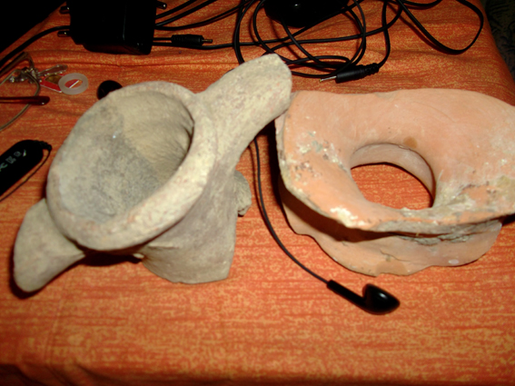 на мой взгляд - др.греческие.[/quote] На первом фото - обломок горла с ручками эллинской амфоры, возможно, даже с клеймом. К сожалению, фотографии очень малоинформативные, и что-то больше сказать по определению, особенно второго керамического предмета, затруднительно.