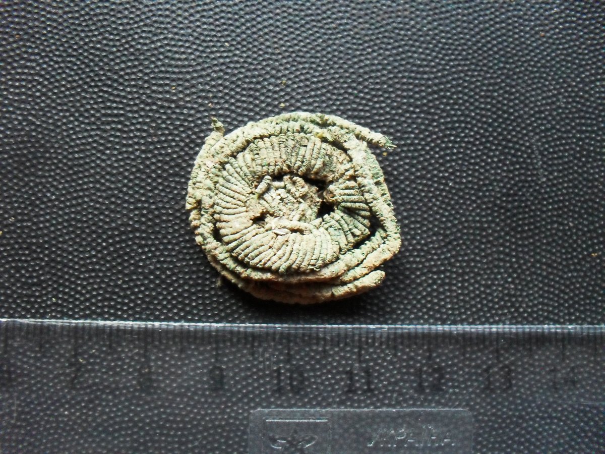 Странно. Предмет находился в земле на военной мусорке (Автро-Венгрия, ПМВ). Материал похожий на нити для плетения, но тверже. Думал, кокарда. Вот еще фото с линейкой: Может, будут еще какието-то мысли? Может, есть фото подобных брошек в лучшем состоянии? Спасибо.