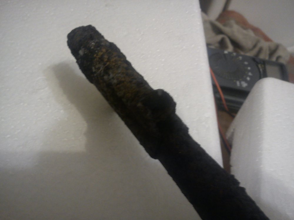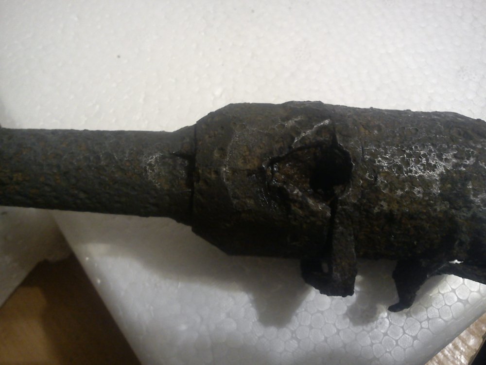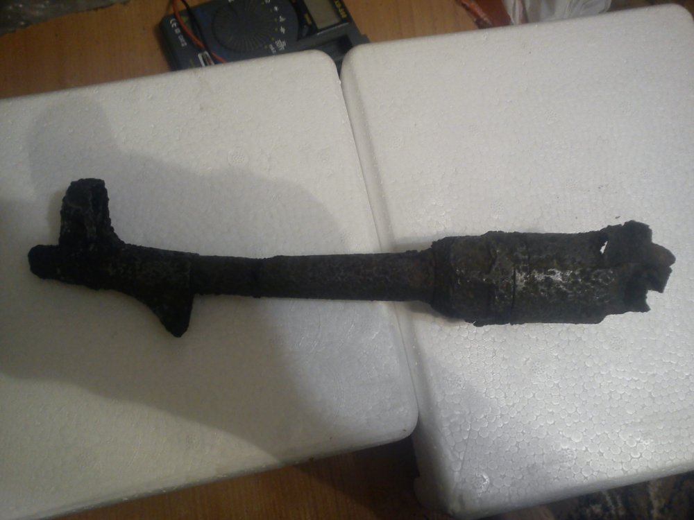 Что с ним произошло не понятно, но ММГировался он еще тогда. В стволе отверствие миллиметров 6, в птроннике тоже отверствие, ствол подогнут, Скоба вокруг прицела лопнула. Из клейм нашел только одно крыло, в районе гайки.