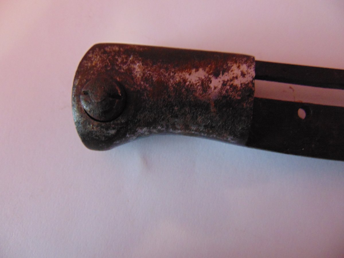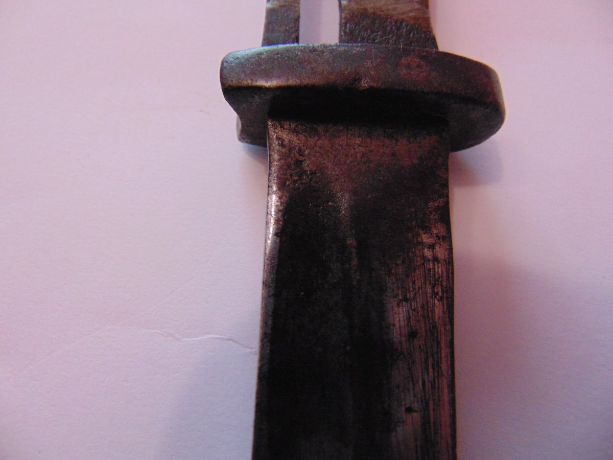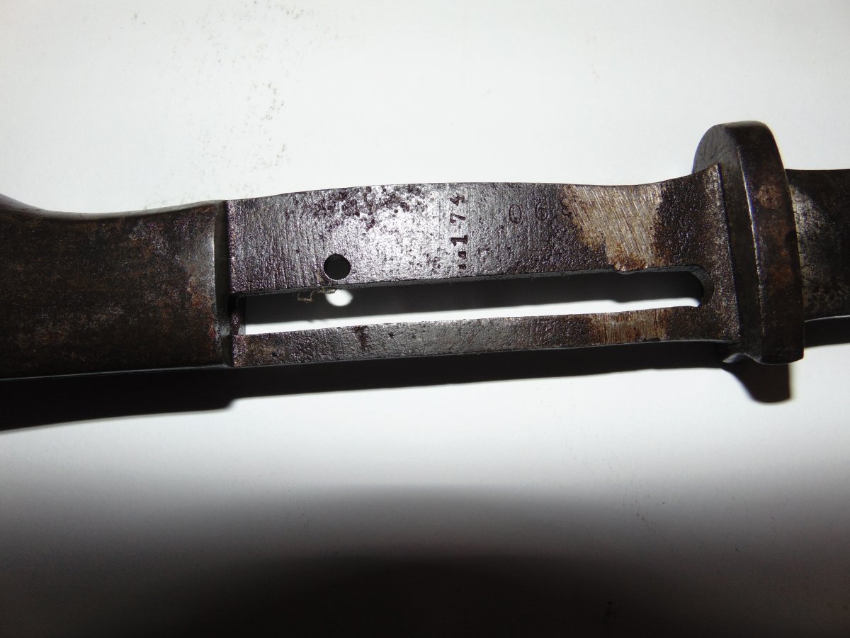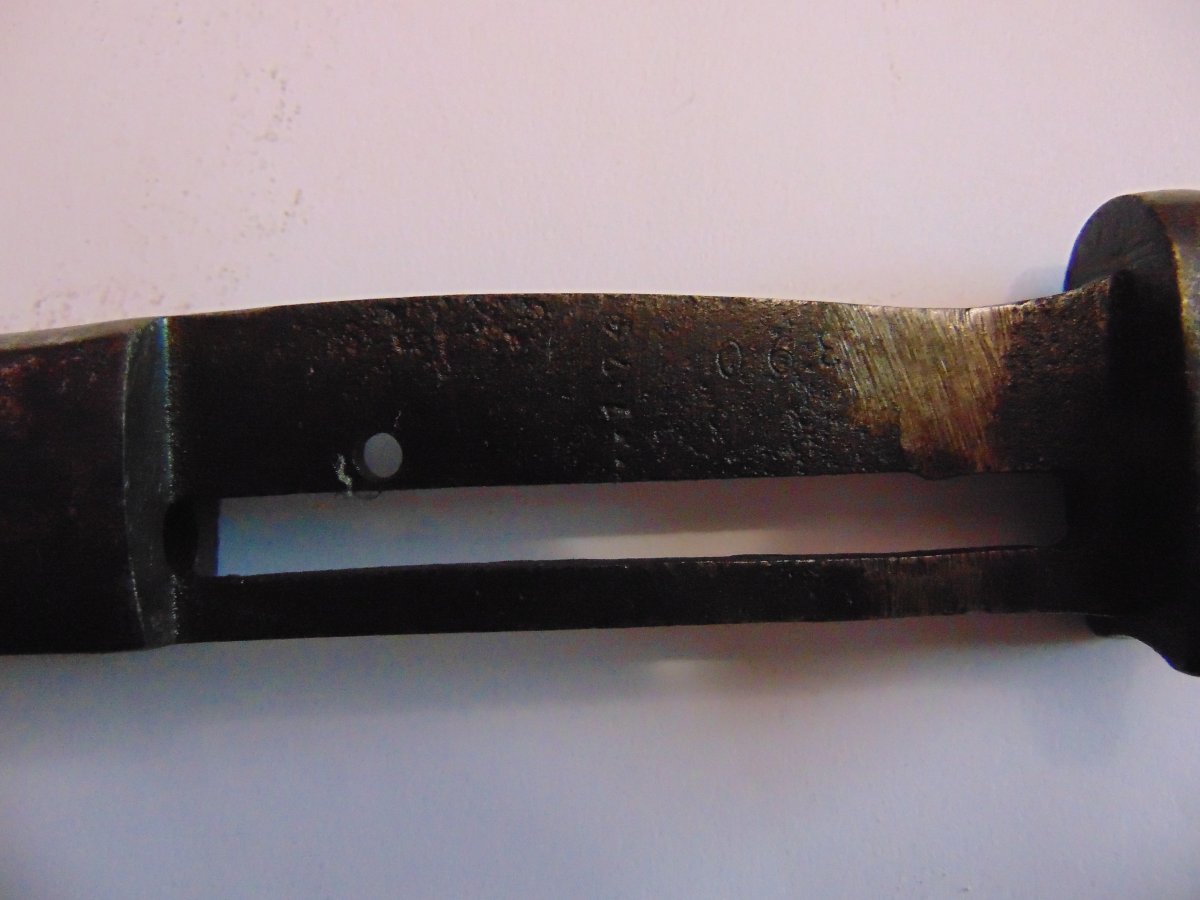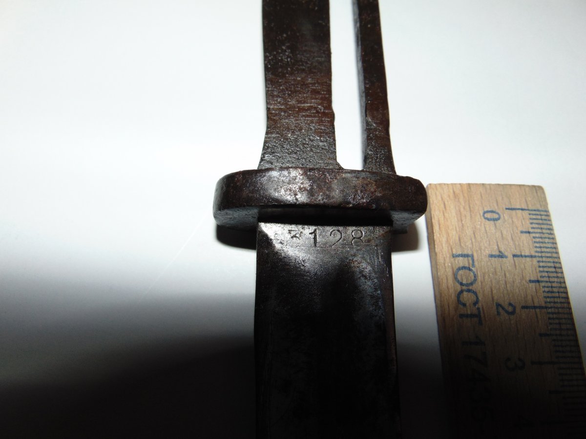 Приветствую форумчан Прошу помощи в определении ценовой политике остатков штык- ножа к винтовке Маузер .На штыке видны остатки никелирования .С одной стороны клинка рейный номер 3128 с другой стороны латинская буква S и серийный номер 71557.На месте где должны будь накладки есть цифры 390 и ..177, с другой стороны цифра 7.Кнопка в рабочем сосстоянии. Длина клинка 23,8 см.Ножен нет.