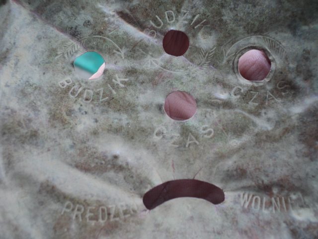Вот вчера выкопали медную крышку, по-моему, будильника. Почему-то надписи повторяются. И сами надписи читаются изнутри, а не снаружи. Снаружи будильника они будут видны в зеркальном отражении. Почему? Это брак? Каких времен? И действительно это польское производство?