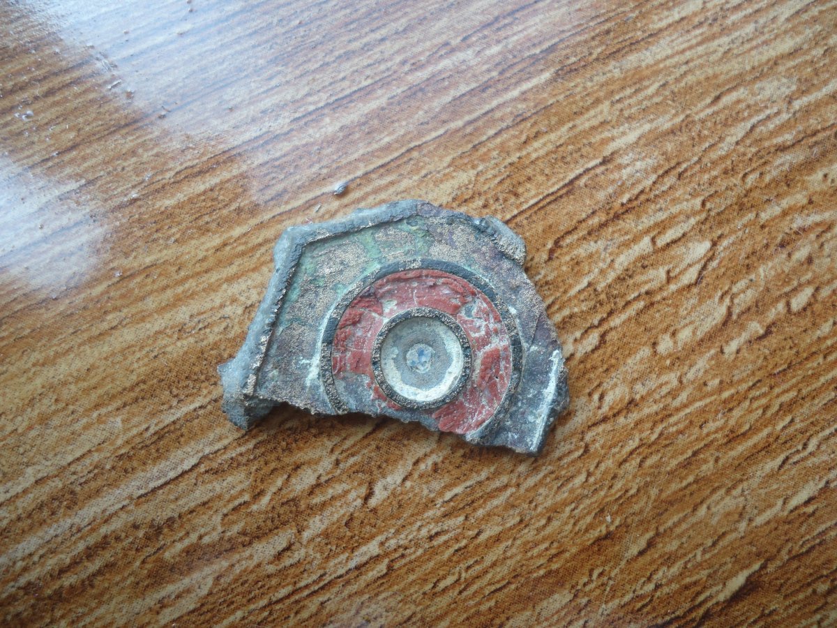 Похоже на кусок древнеримской фибулы в эмалях. https://www.google.com/search?espv=....0..0.0....0...1c.1.64.img..0.0.0.pSoBzJluN5w