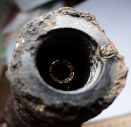 Выкопал такой предмет. Железо убитое, внутри бакелитовая трубка, по центру, по оси с обеих сторон контакт. Кроме того, в бакелит вплавлен тросик. От чего это?