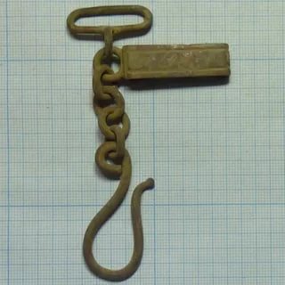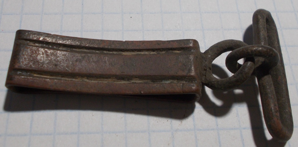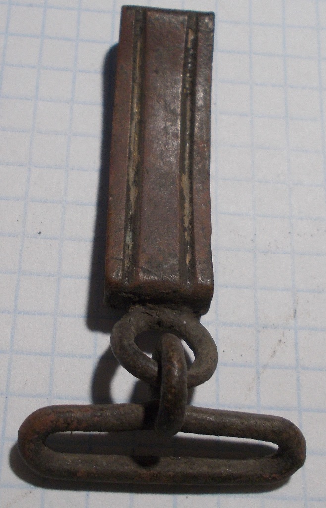 Подвес или его часть,возможно,от массивного,плоского тесака с шириной лезвия до 4см(по клетчатому фону) и до 2,8см шириной ремешка...:rolleyes:o_O:confused: