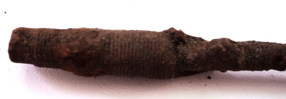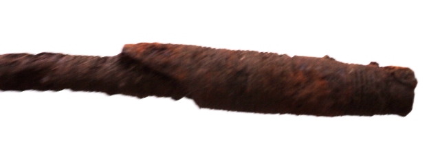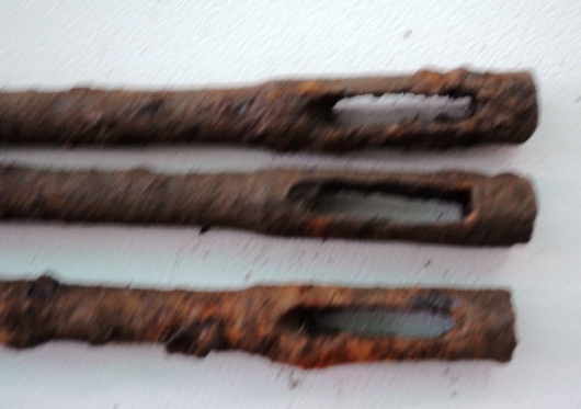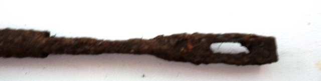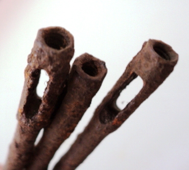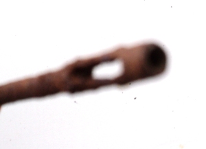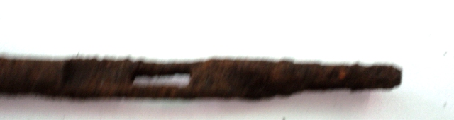 От пятого обломок. Сделан в виде трубки. На конце два продолговатых отверстия, перпендикулярных друг другу.