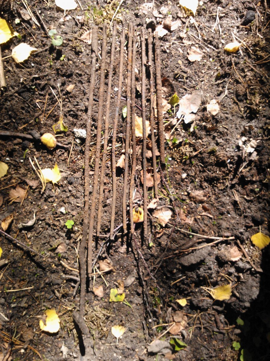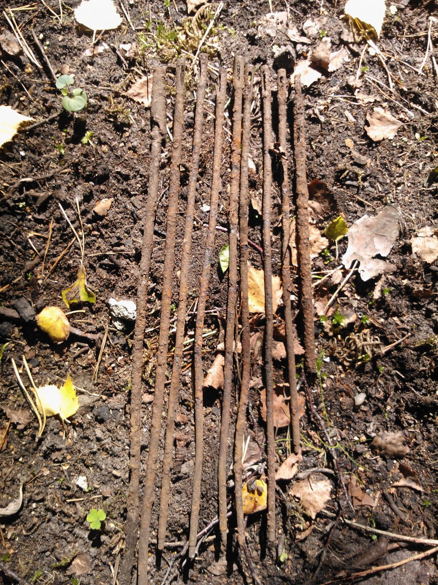 На месте где нашел много деталей от МГ, МП и др. нашел такие шомпола. Сначала думал просто проволока, а сегодня ходил за грибами и посмотрел внимательнее, оказалось шомпола.