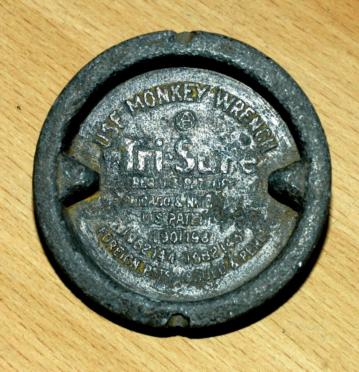 Ребяты! Попалась вот, такая закрутка, то ли от бочки, то ли от бака. Диаметр - примерно, 5 см. Железка, вроде, как американская. Материал - какой то лёгкий сплав, типа дюраля. Подскажите, кто знает от чего и примерно, каких годов (периода).