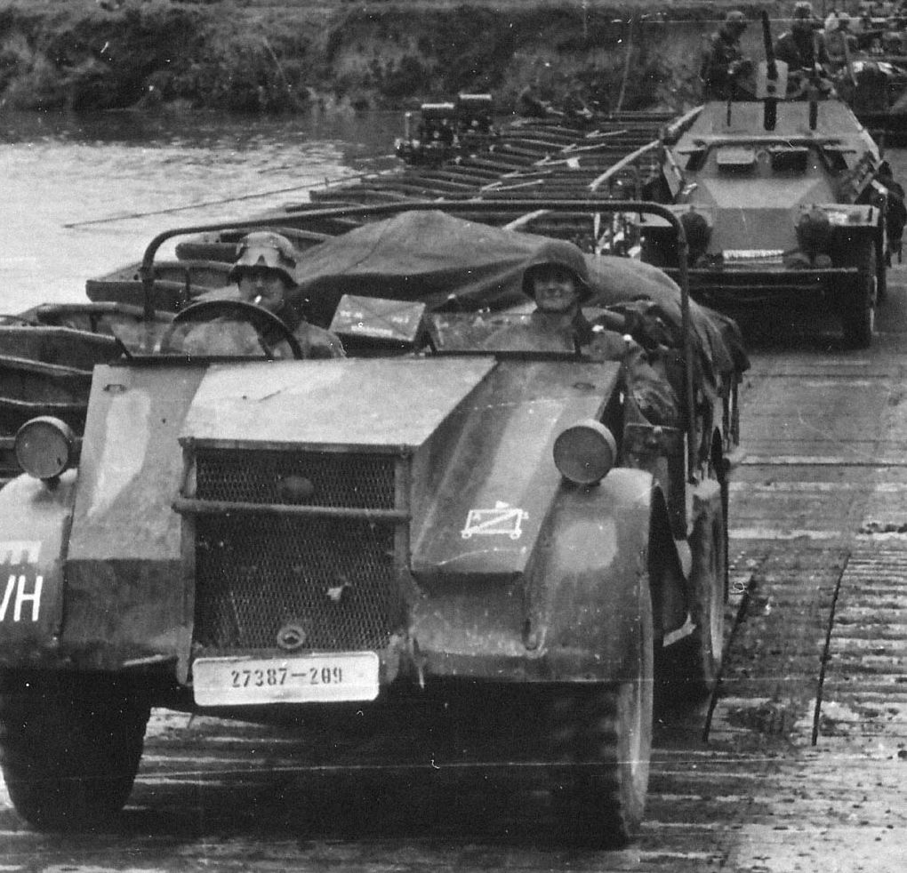 1.Bedford OYD. 2.Guy "Ant" из моторизованной разведки. 3.Bedford OXD. 4-6.Guy "Ant". Разные автомобили из одного подразделения. У первой машины собственное имя "Элли". Спереди на автомобилях нанесены балкенкройнц и одна руна Ваффен-СС. Вторая машина буксирует французскую 25-мм противотанковую пушку Hotchkiss образца 1934 года.