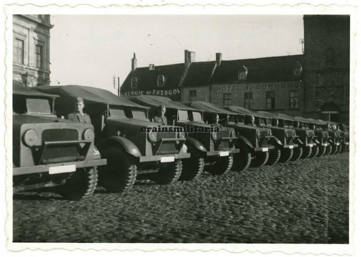 1.Morris-Commercial CS8 или C4 из состава медицинской роты 164-й пехотной дивизии. 2.Bedford, вероятно модель OS или OL с неродной боковиной капота.В кузове какая-то санитарная установка.Может вошебойка для одежды ? 3.Артиллерийские тягачи Morris C8 FAT брошенные во французском городке Сен-Валери-ан-Ко ( St.Valery-en-Caux ), 1940 год.Город находится на побережье Ла-Манша примерно в 30 км западнее Дьеппа. 4.Командно-штабной автомобиль Morris-Commercial CD.Судя по избе на заднем плане - где-то на Восточном фронте.Фото этого авто затрофееного немцами попадается впервые.Видимо поэтому продавец не поскупился на копирайты 5.Тут нужна помощь клуба Это немецкий Ford или британский ? 212-пехотная дивизия, Tellancourt Briey ( город ? ), Франция.